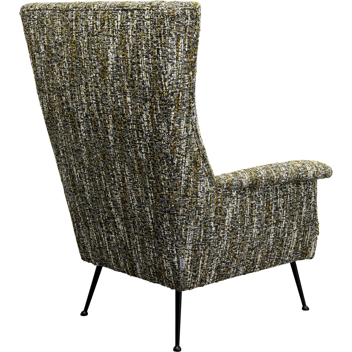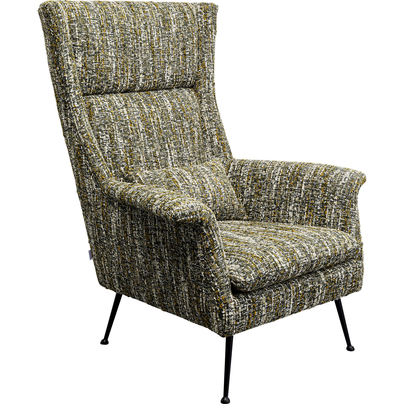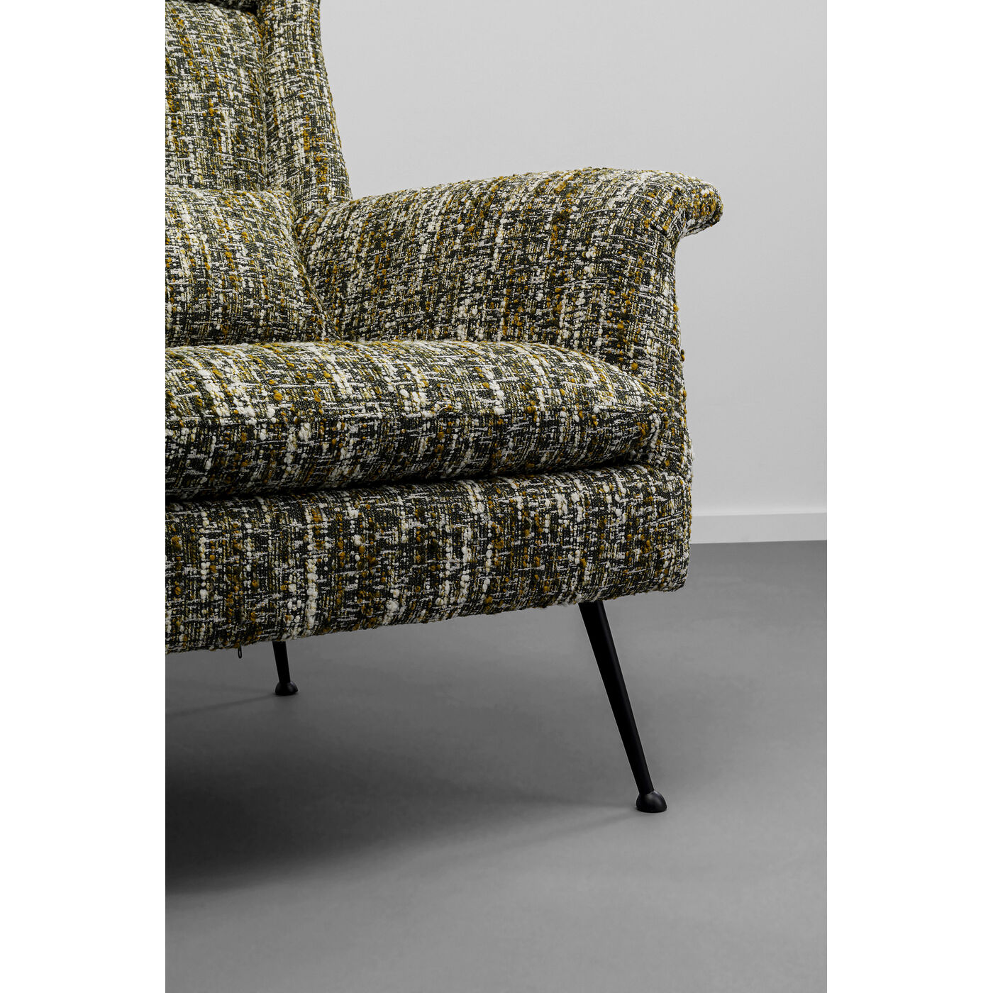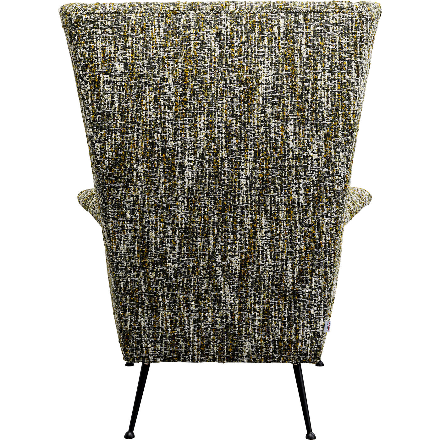 A real design highlight with retro flair: this armchair combines stylish elegance with modern comfort. The mottled fabric cover in soft green tones is reminiscent of nature and brings a calming atmosphere to any room. The high backrest and curved armrests invite you to relax, while the delicate legs give the armchair a light, floating appearance. Ideal as a solitary piece in the living room or as a cozy retreat in the study - this armchair blends harmoniously into various furnishing styles while adding a striking accent. A must-have for anyone who appreciates design and comfort.