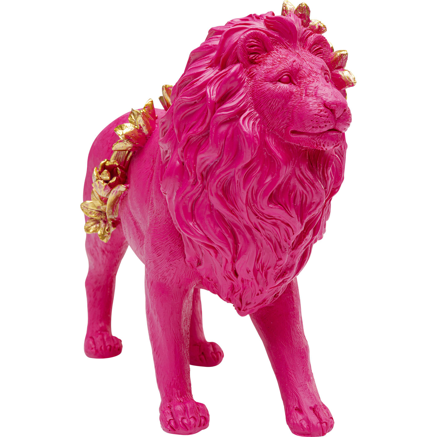 Bold colors meet royal pride: this decorative figure in the shape of a pink lion brings life to any arrangement. Decorated with golden floral accents, the powerful animal appears both playful and graceful—an exciting break in style with decorative appeal. Made of sturdy polyresin and finished with elaborate craftsmanship, this unique piece impresses with its expressiveness and attention to detail. Whether as an eye-catcher on the sideboard, a charming addition to the shelf, or a playful accent on the windowsill, this decorative highlight adds character to any room. Particularly effective in modern interiors that are not afraid of eye-catchers.