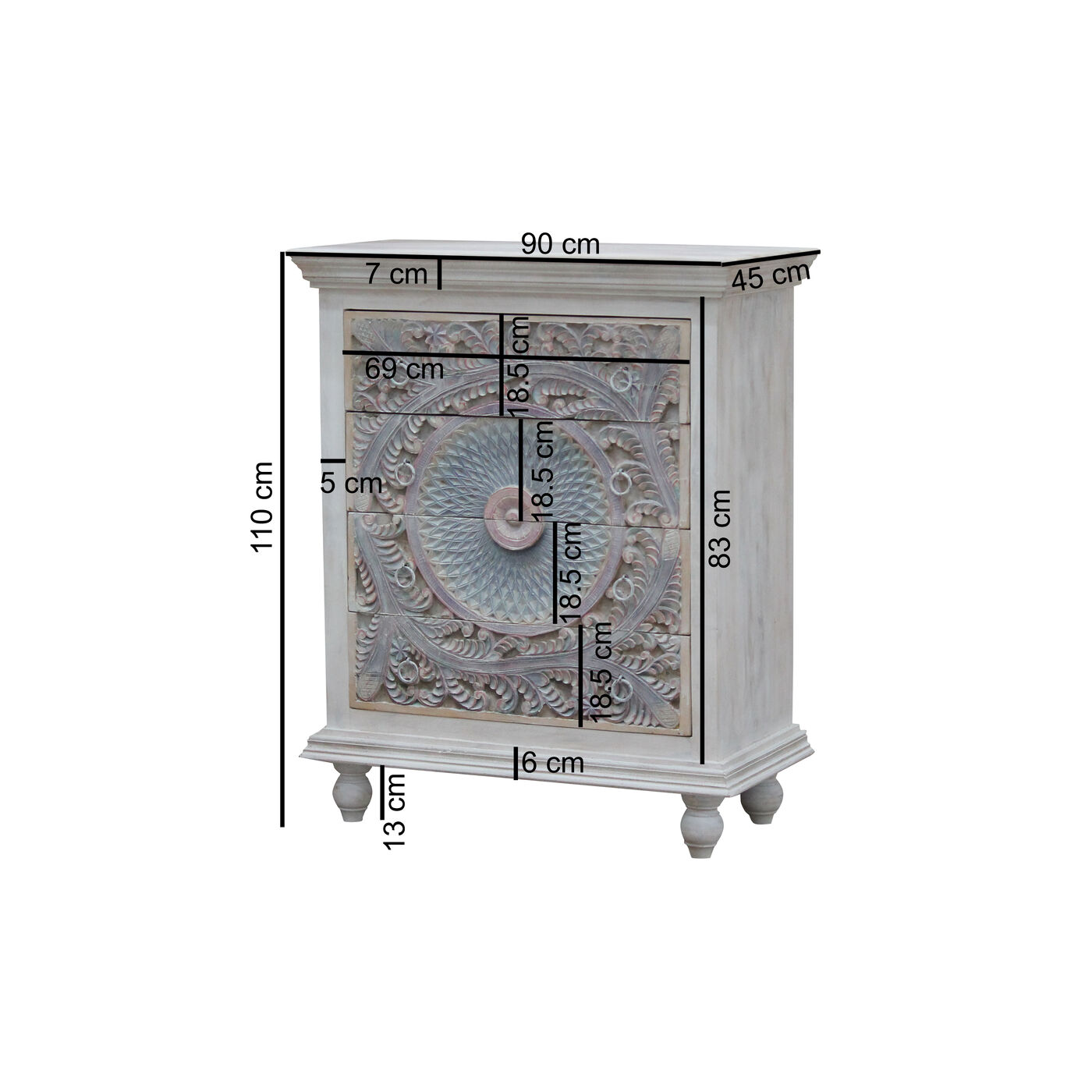 - Small chest of drawers with body and fronts made of solid mango wood, basic colour white, 110 x 90 x 45 cm (H/W/D)