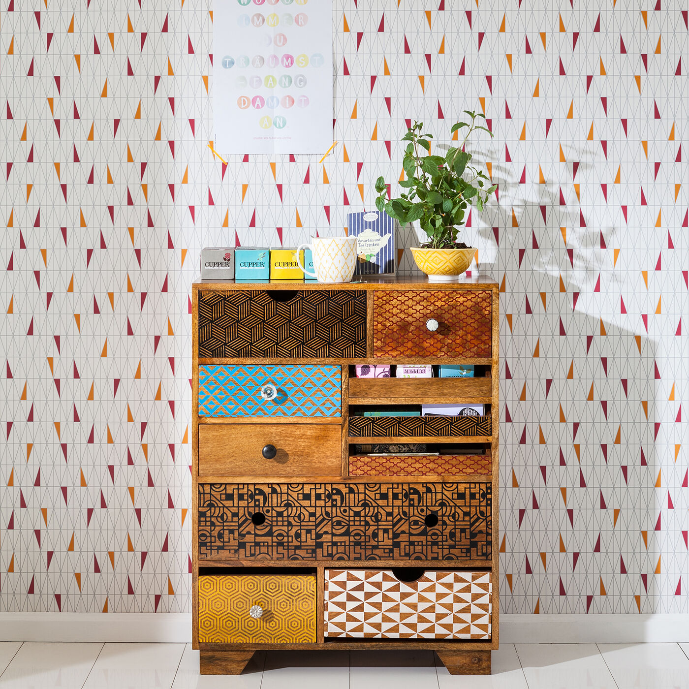 - Thanks to its dimensions, this wooden chest of drawers offers plenty of storage space even where space is limited, for example in a narrow hallway