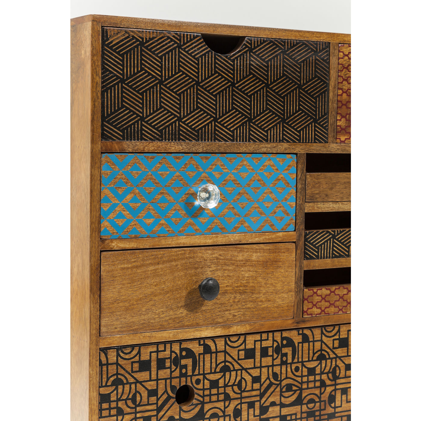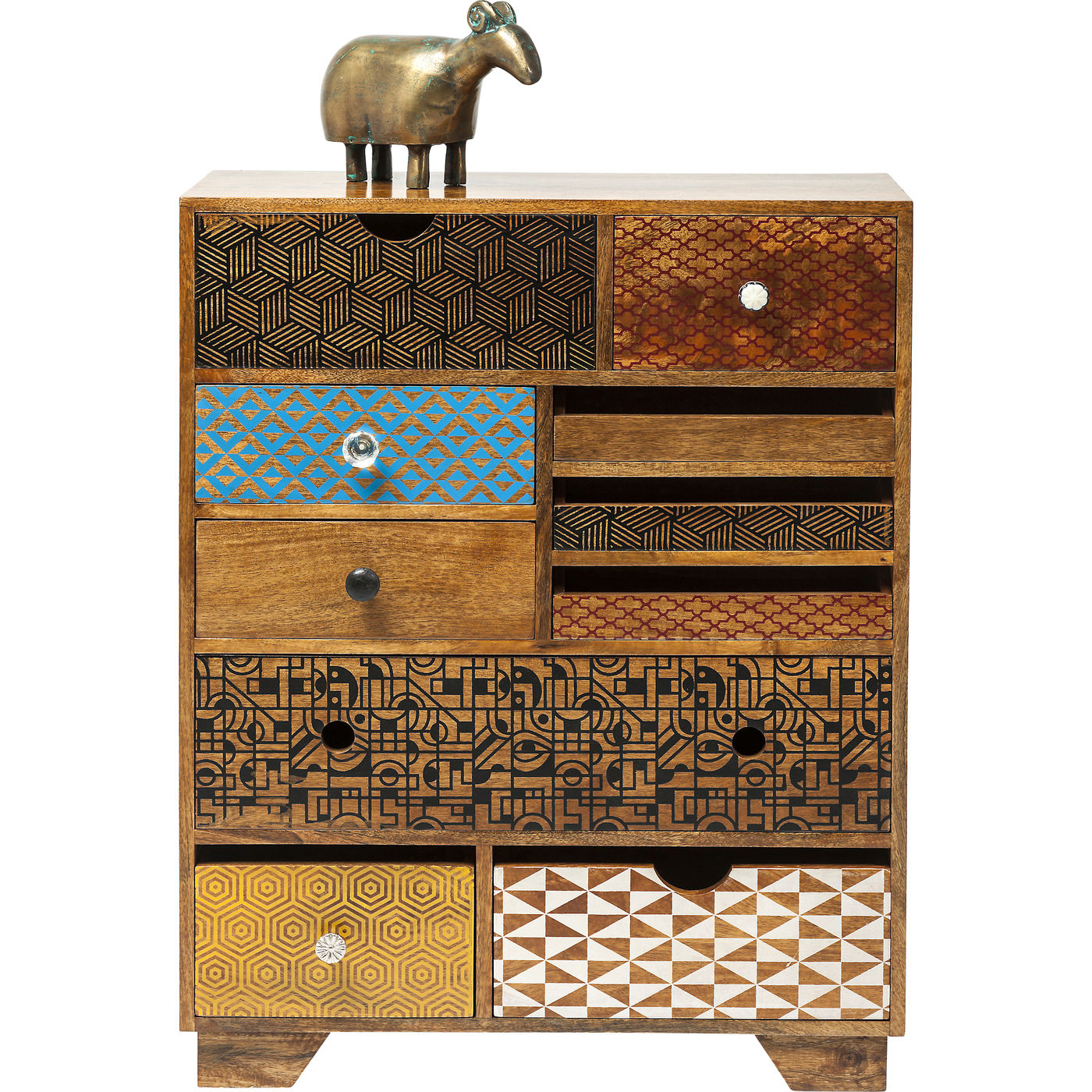 An individual furniture series that radiates personality with its patterned fronts, homelike colours and striking solid mango wood. Whether in the ethno style, shabby chic or modern country house, the various models in the Soleil furniture collection are eye-catchers that create a cheerful, relaxed furnishing feeling.