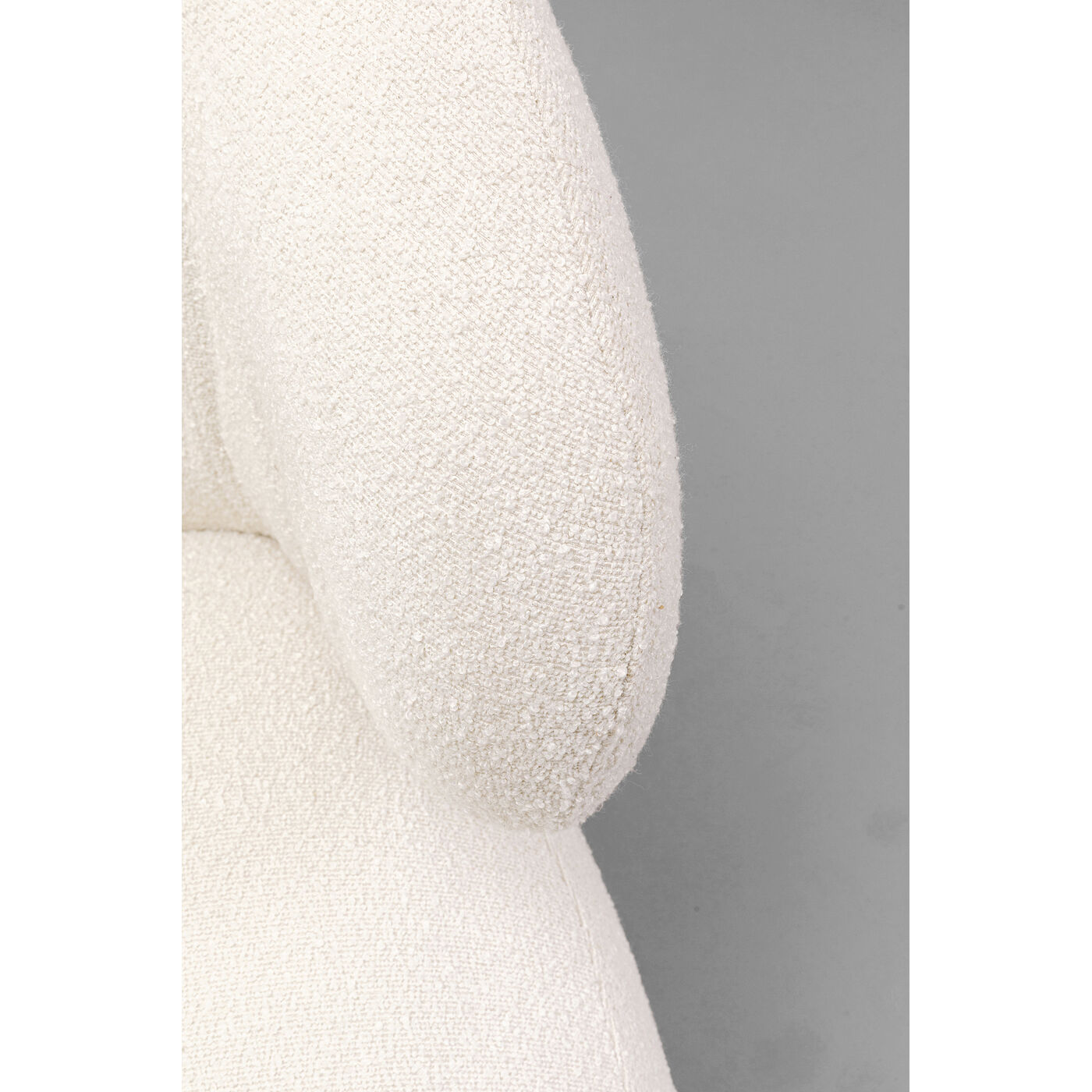 - The soft bouclé cover in elegant cream-white and the rounded shape create an inviting, timeless look