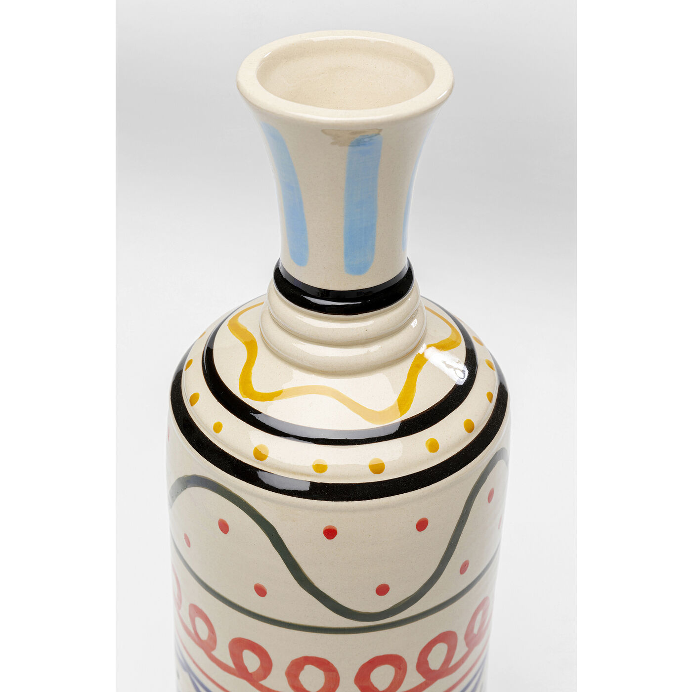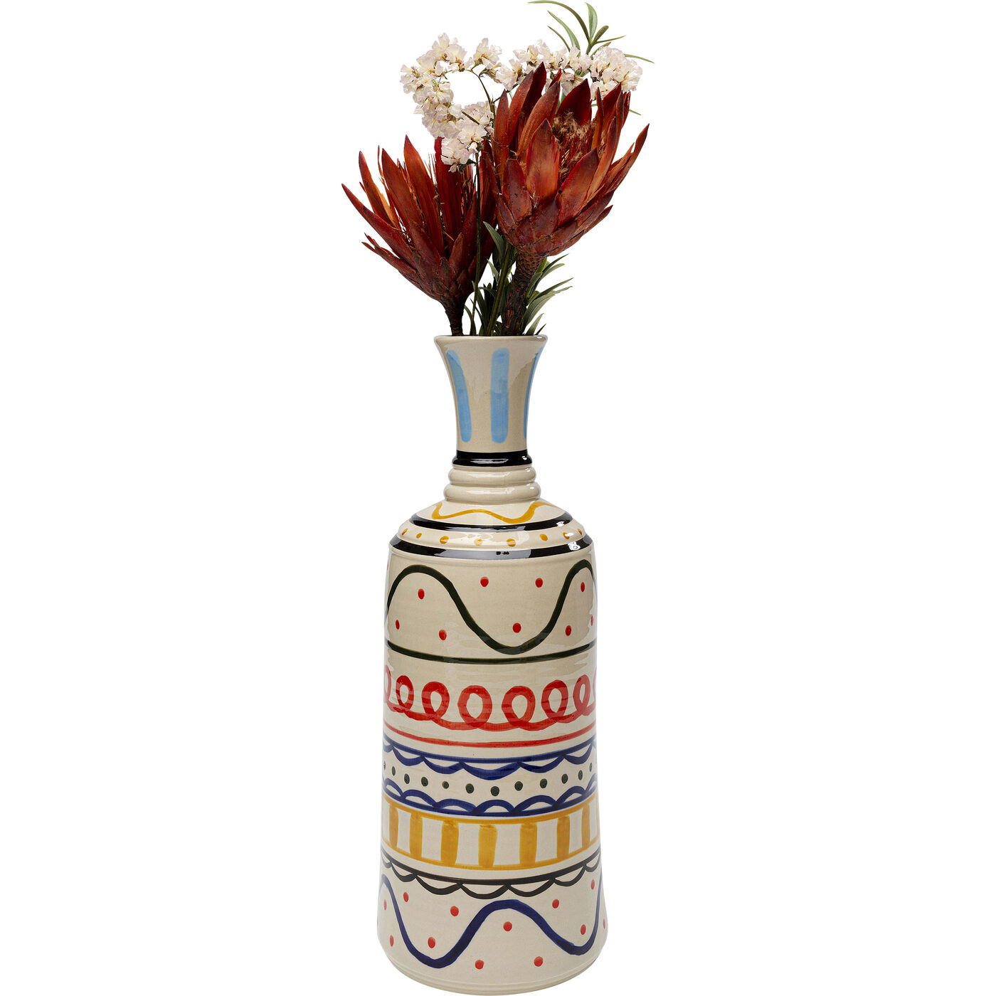 - Tall slender vase with colorful pattern, 40 x 16 x 16 centimeters (h/w/d)