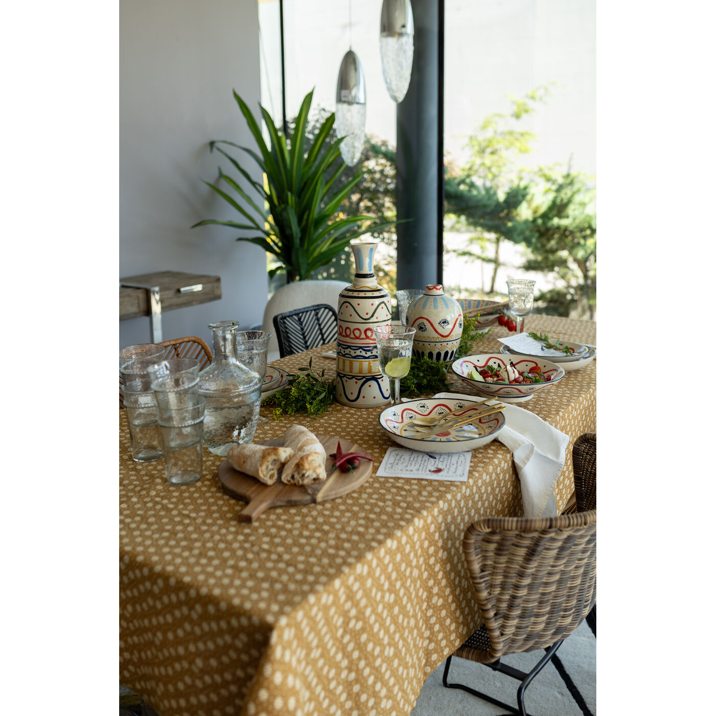 - The strong colors and traditional shapes of the vases emphasize the rural, Mediterranean style of living