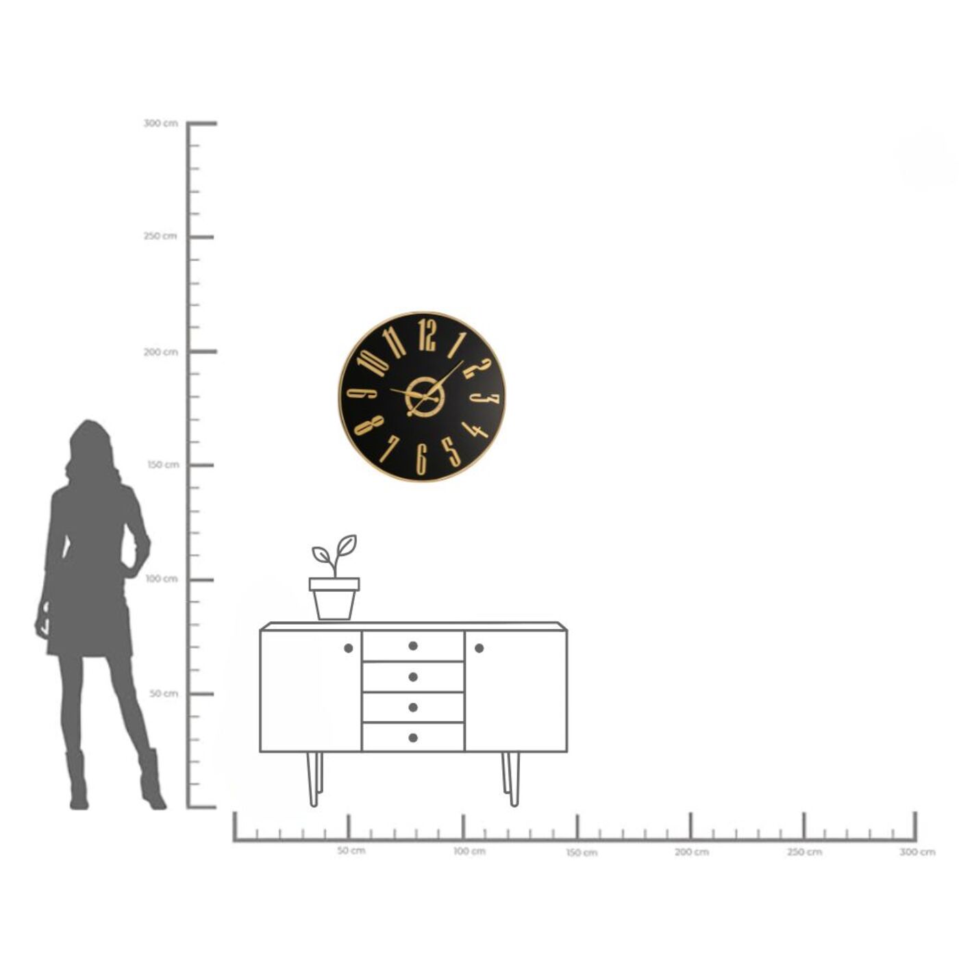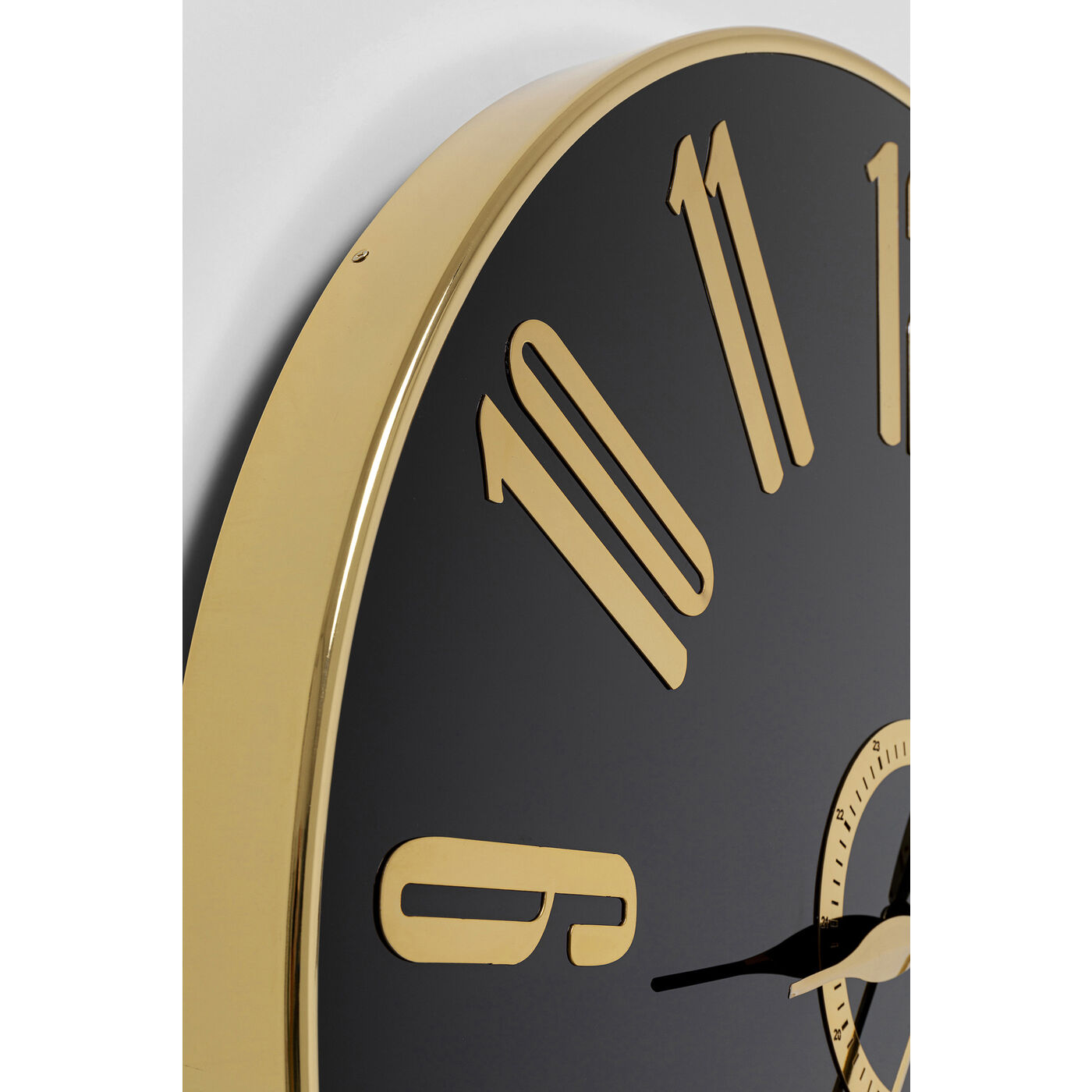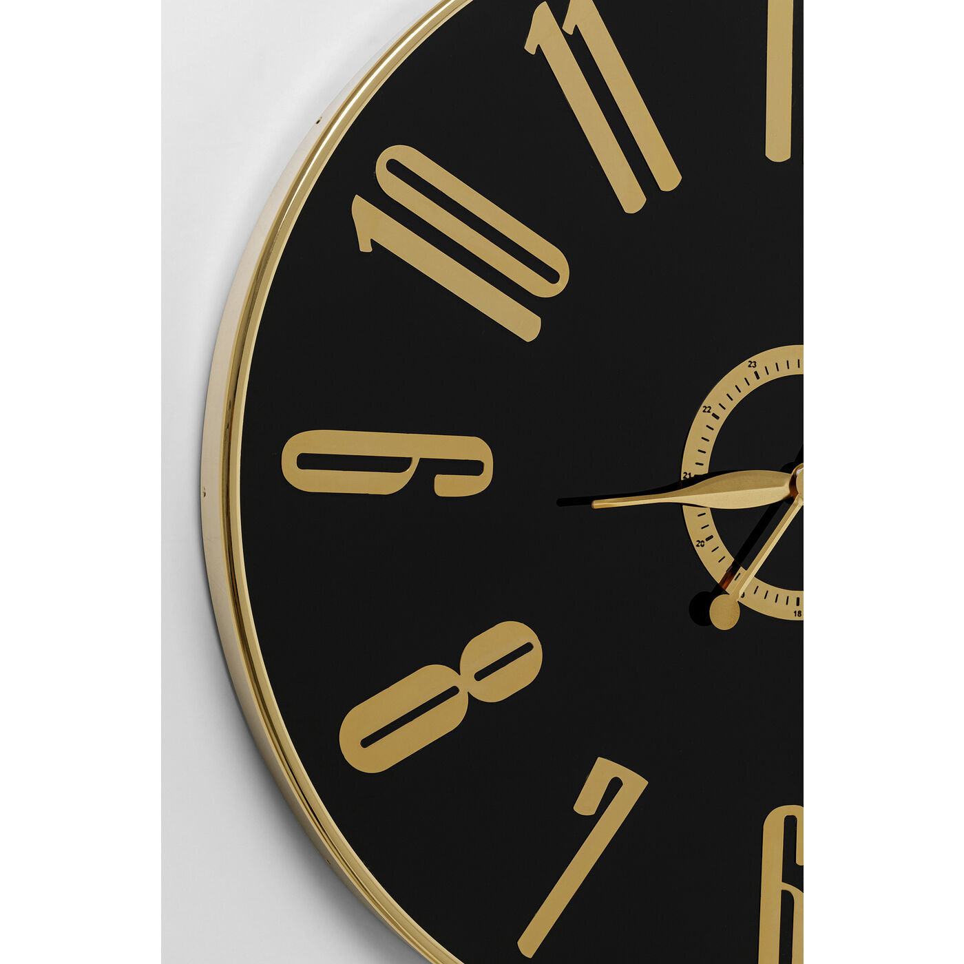 Much more than a functional time indicator: The black quartz clock also has a very decorative character as a wall decoration. The large Arabic numerals are easy to read from afar. The round wall clock with the black glass dial and gold-colored hands is an optical eye-catcher and a useful clock at the same time. With its combination of black dial and luxurious gold-tone hands, it exudes elegance and is a valuable addition to any interior, whether in the living room, bedroom or office. The precisely ticking golden hands ensure that you always have the current time in view. With its timeless design, this wall clock is also a small work of art as a wall decoration.