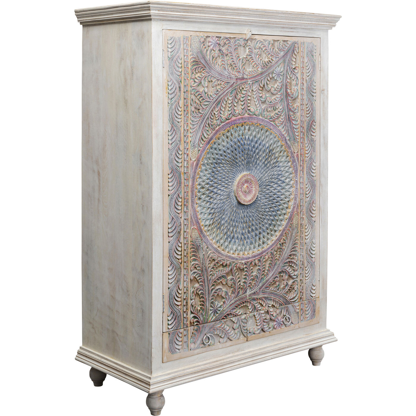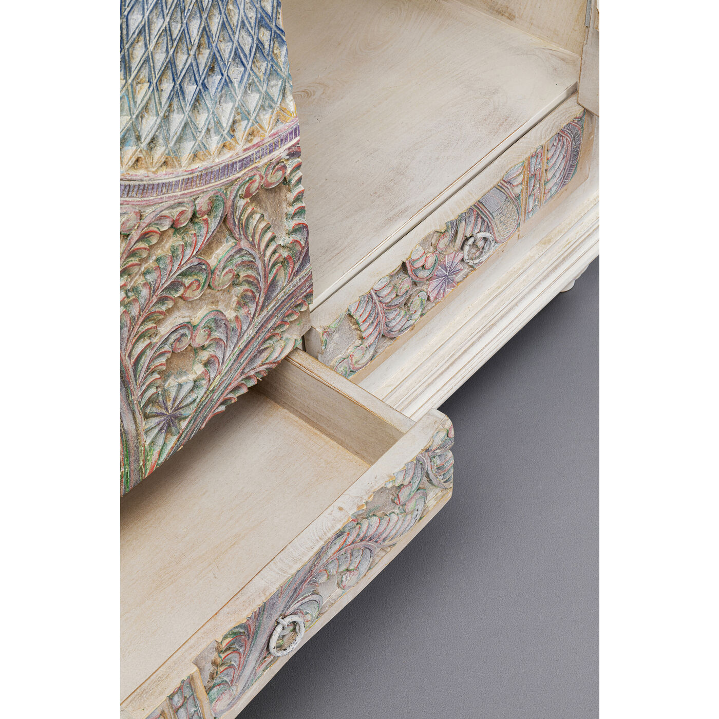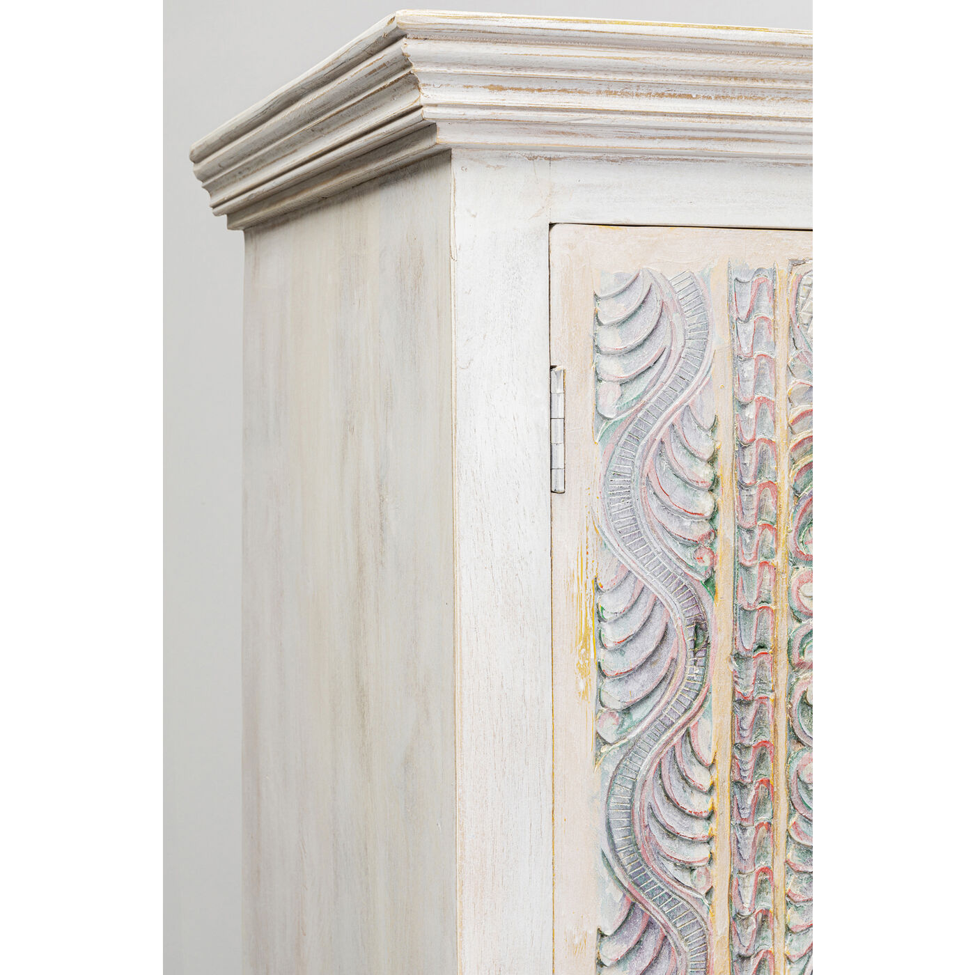 Immerse yourself in the fascinating world of our unique furniture from the Goa series, which combines traditional craftsmanship with cheerful ethnic styling. The charming shabby-chic design in an off-white look with delicate shades of pink and blue adds an invigorating touch to your room. At the same time, with plenty of space Goa offers a practical solution for your storage needs, whether in the hallway, bedroom or living room. An attention-getter with functionality that will enrich your home in an enchanting way. The finish is impressive, too: from the feet to the front and body, our Goa furniture is made of solid mango wood. This creates the best conditions for a long life on the part of this wardrobe. Moreover, furniture made of solid wood can be recycled effectively.