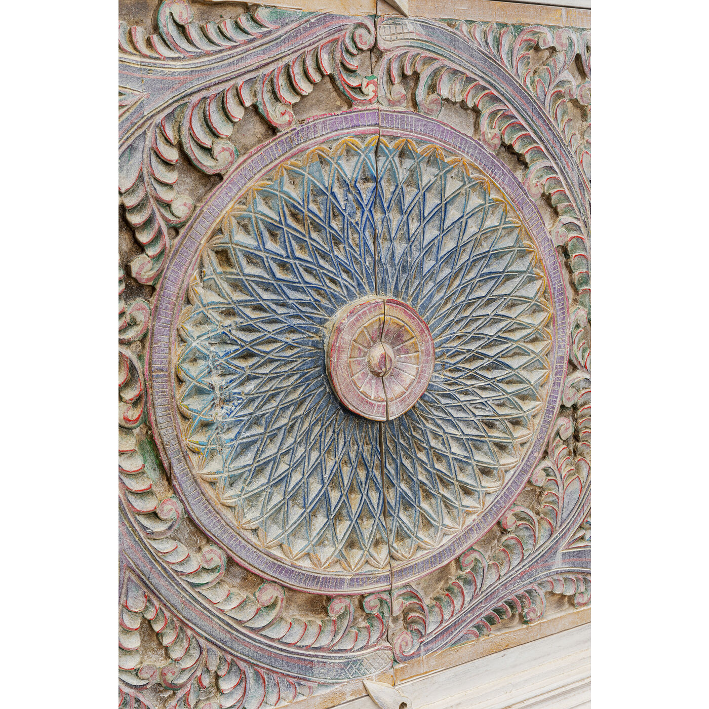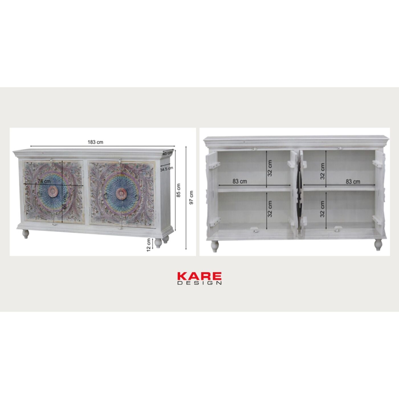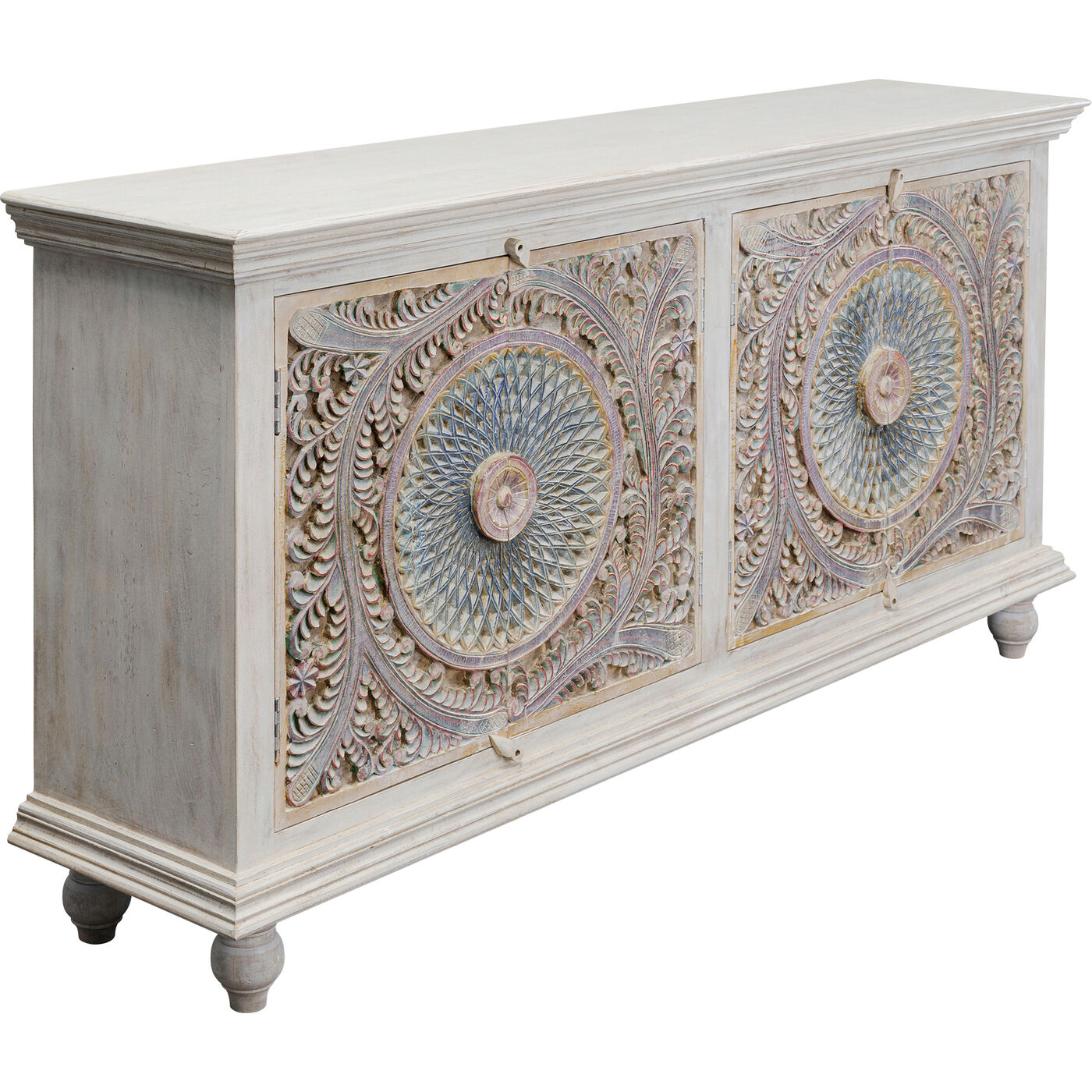 - Buffet coloré entièrement en bois massif de manguier, couleur de base blanc, 95 x 180 x 40 centimètres (h/l/p)