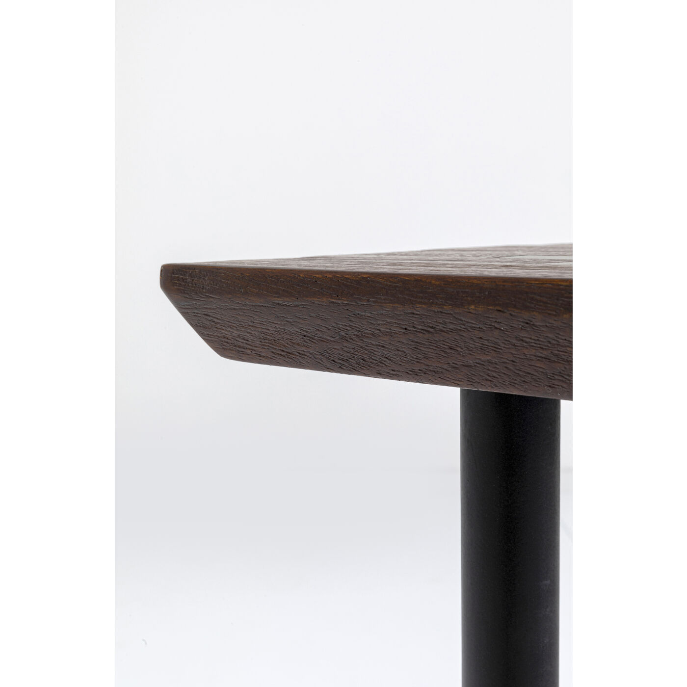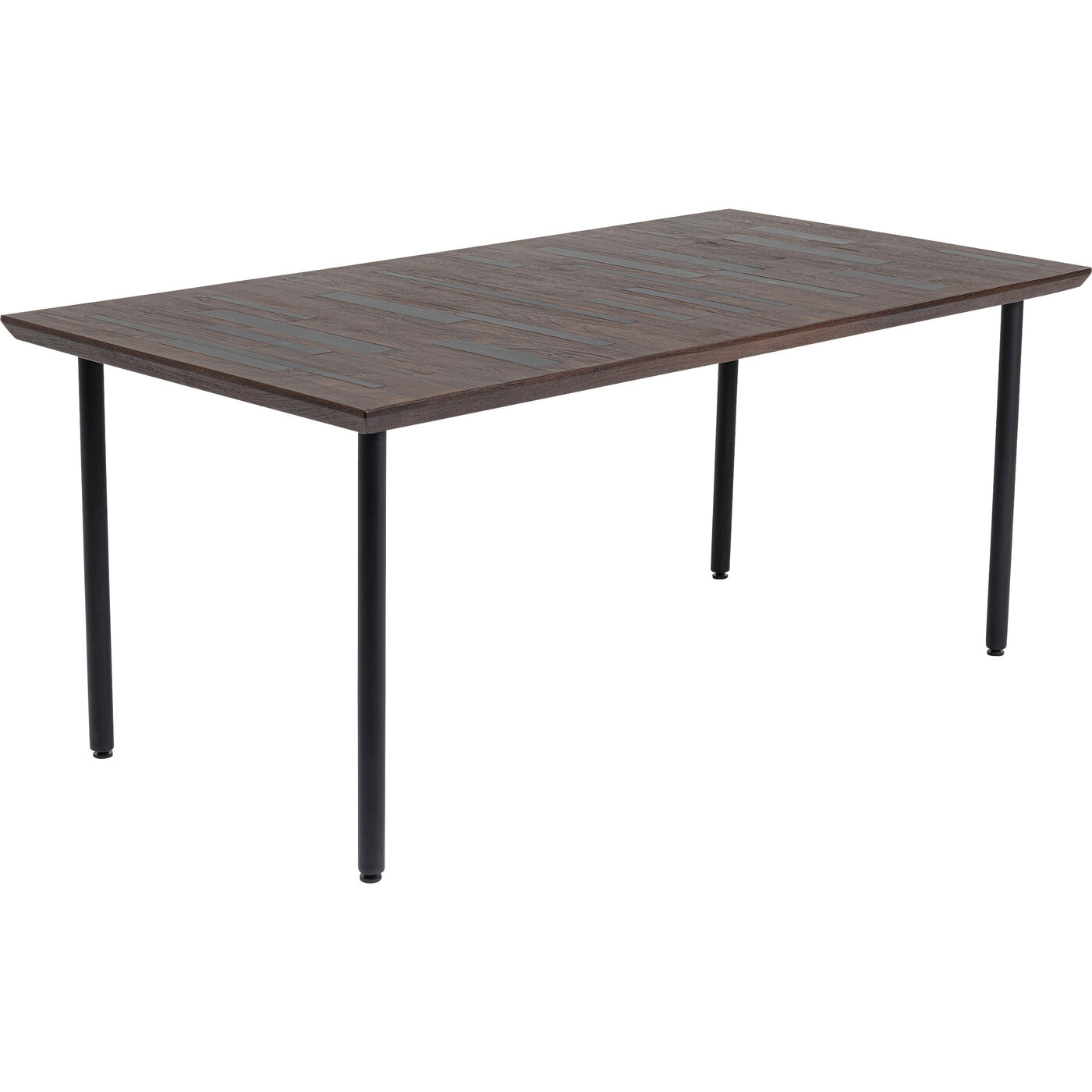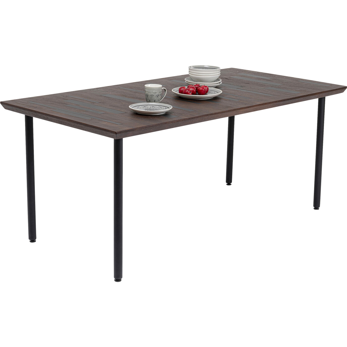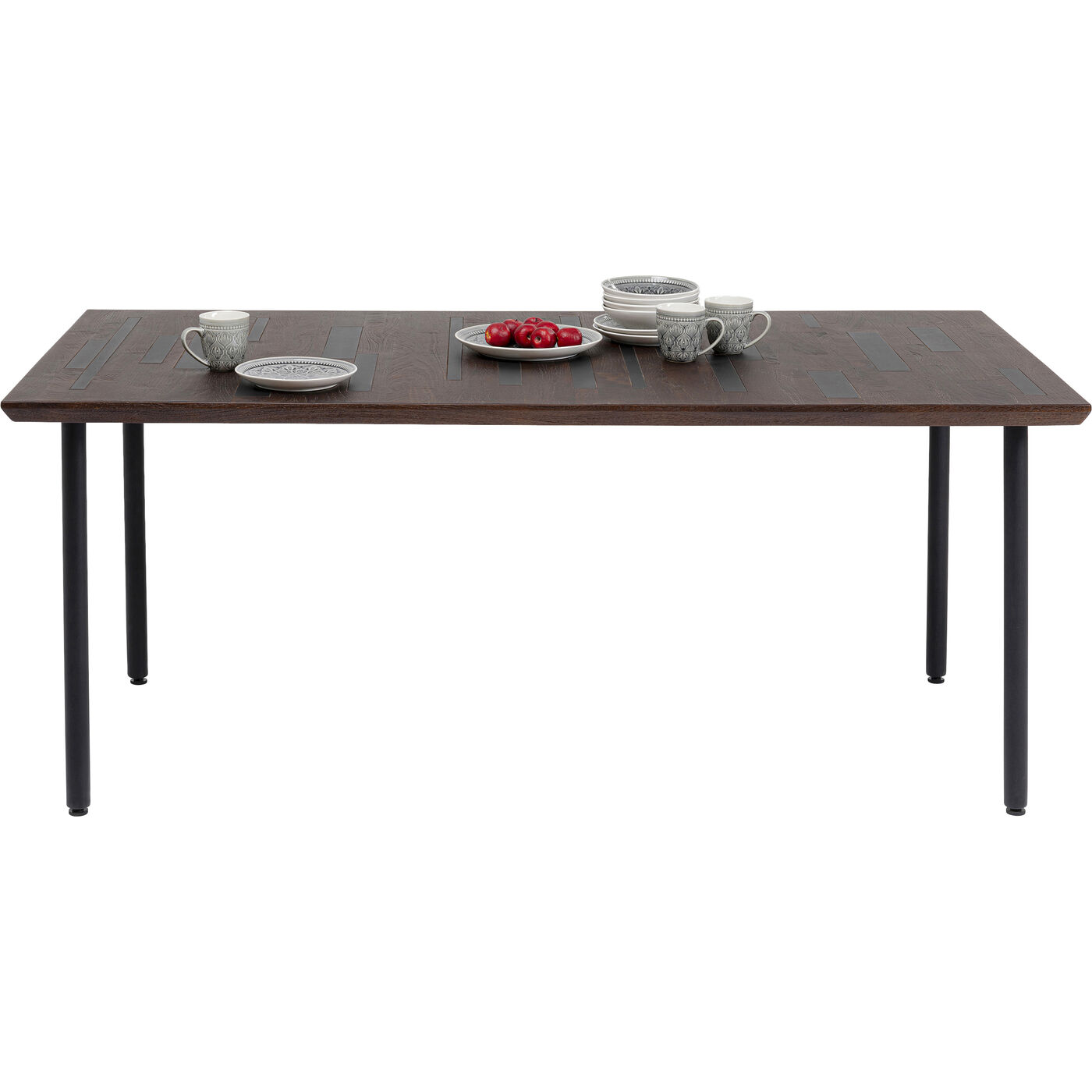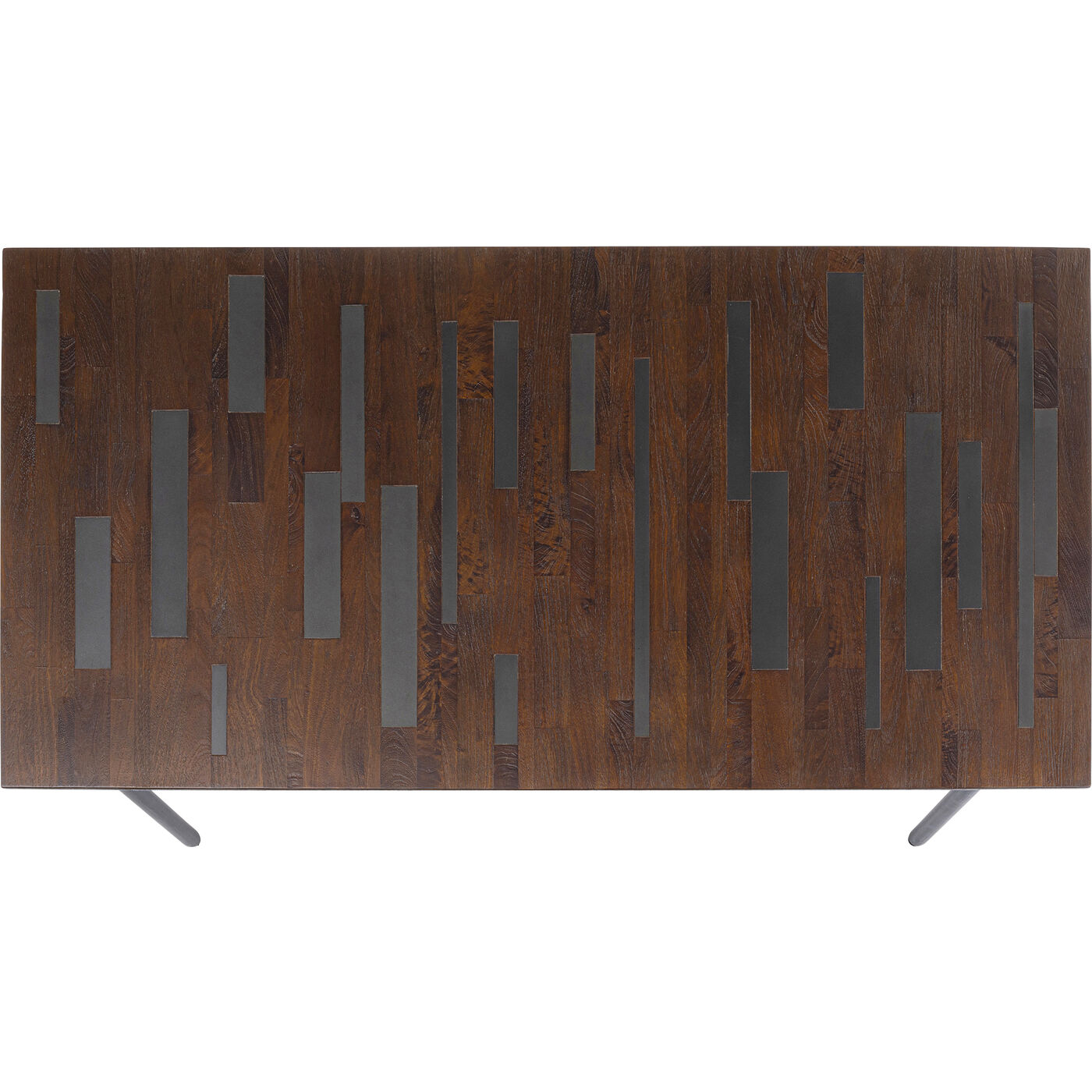 Cette table de salle à manger classique avec marqueterie n est pas si classique que ça : le plateau de table en bois de manguier foncé et laqué est parsemé de rectangles de différentes tailles - le motif représente des gouttes de pluie de manière graphique. Qu il pleuve ou qu il neige dehors : vous pouvez passer des soirées agréables avec toute la famille autour de cette table de 180x90cm, que ce soit pour un dîner dans la salle à manger ou pour une soirée de jeux dans le salon.