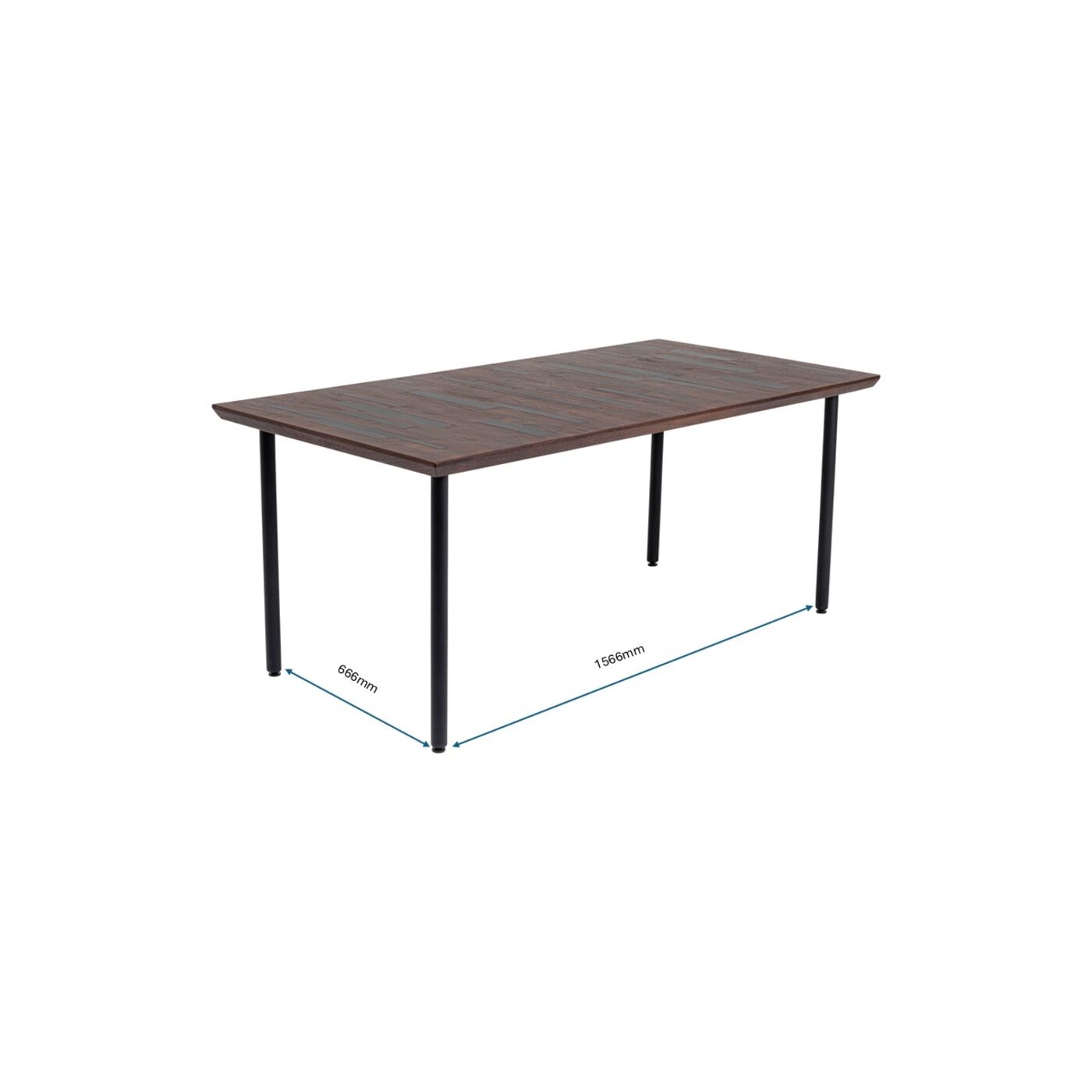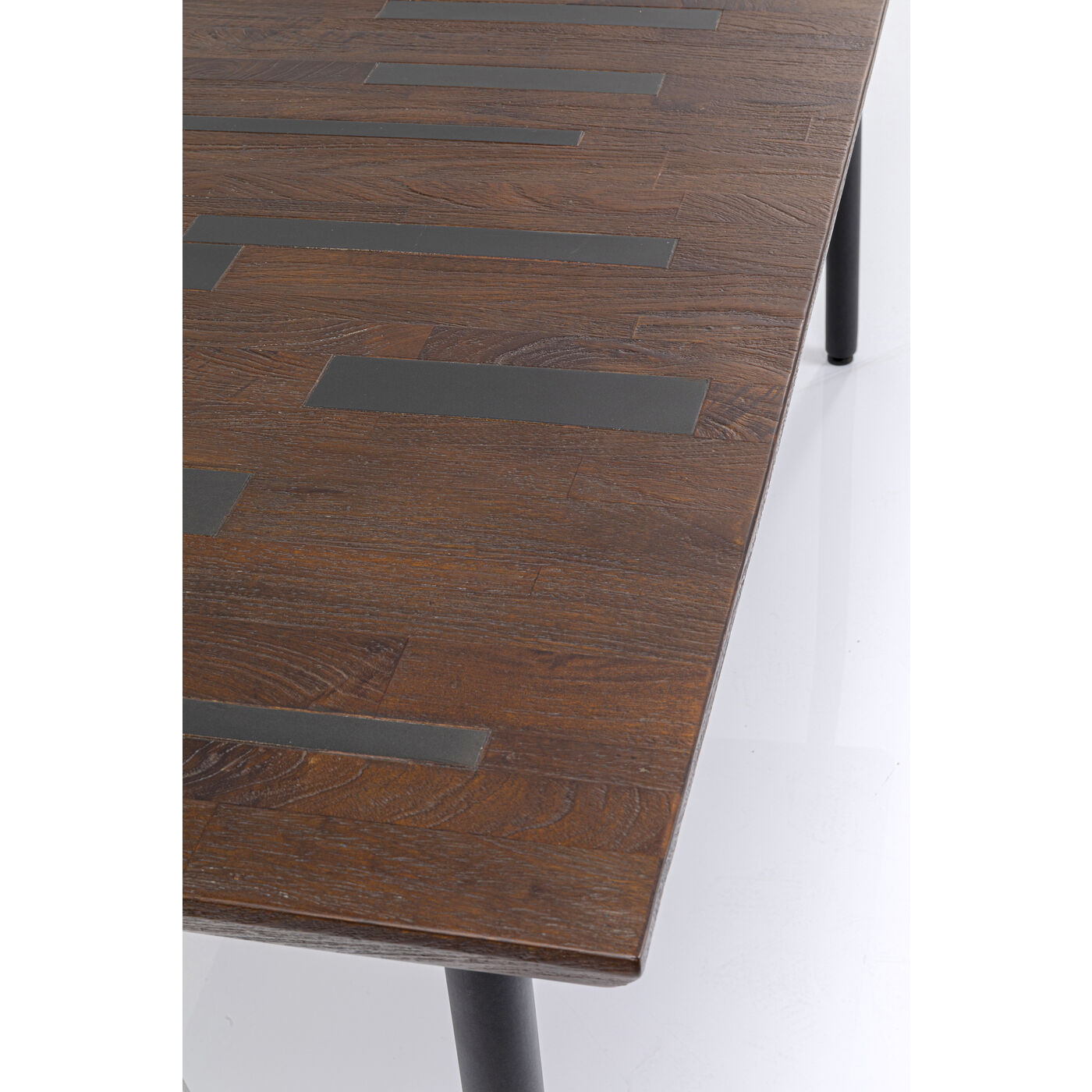 - Des incrustations graphiques noires dans le plateau de table en bois de manguier font de cette table de salle à manger un meuble design