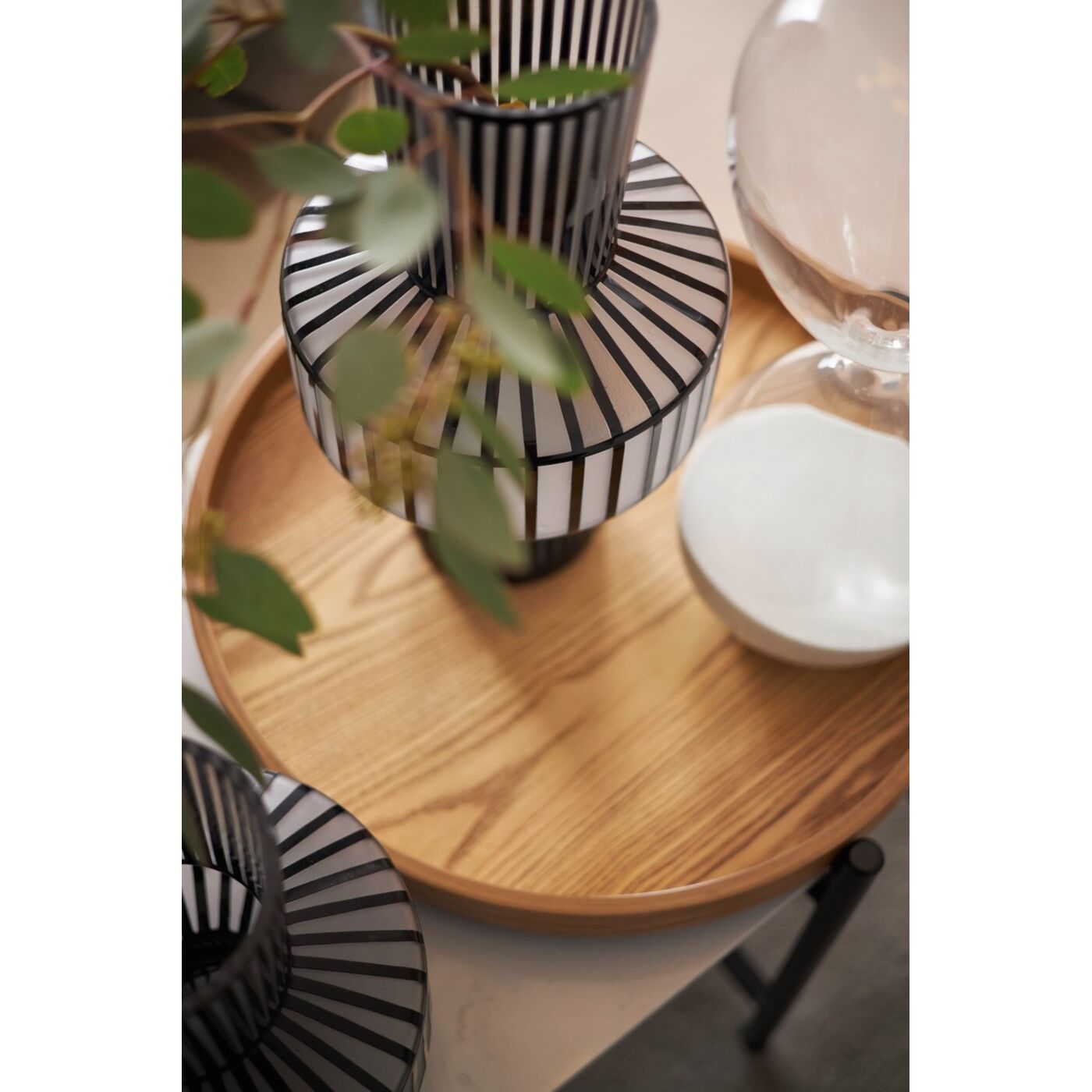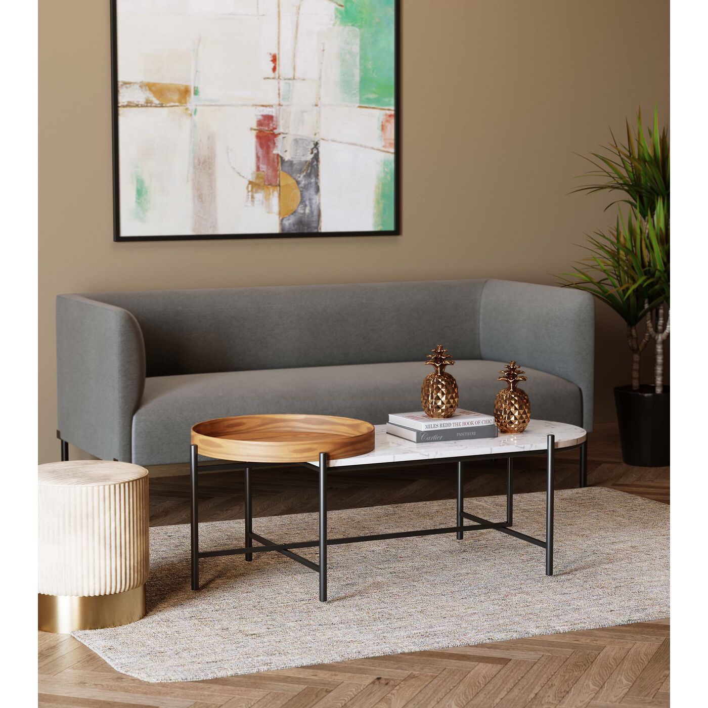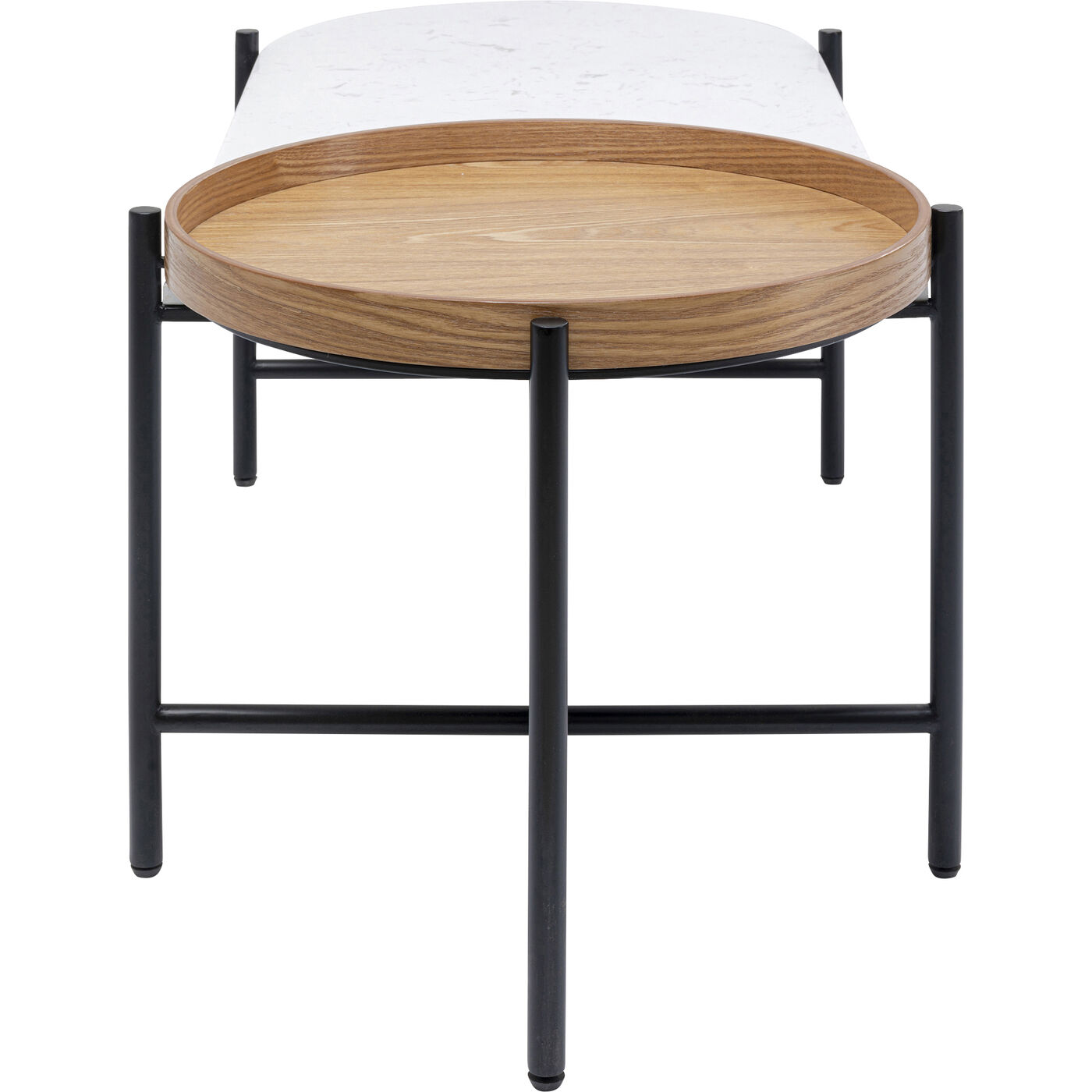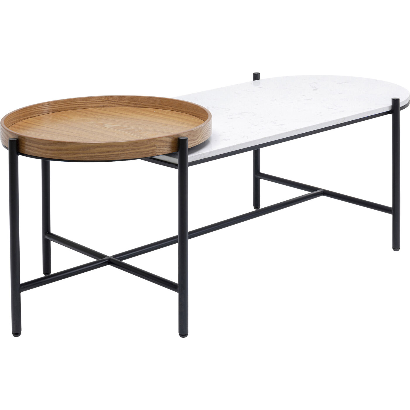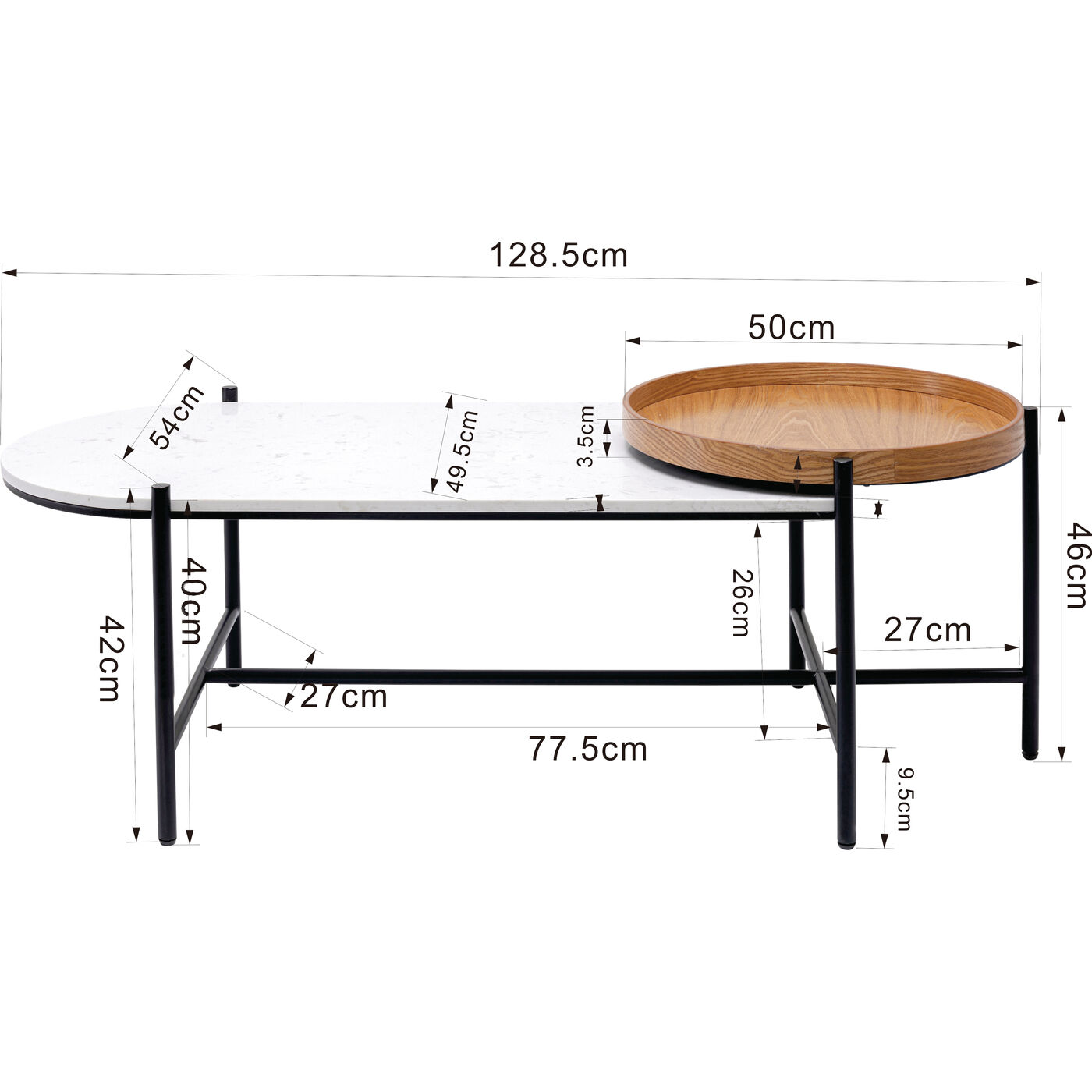 Élégant et éternellement jeune, c’est la combinaison de couleurs du noir, du blanc et du bois clair. La grande table d’appoint peut être combinée avec un mobilier minimaliste ainsi qu’un contraste chic avec les meubles rembourrés moelleux en velours. Les deux plateaux de table géométriques vous invitent non seulement à utiliser la table basse comme étagère fonctionnelle, mais aussi à la décorer avec des bouquets et des accessoires.