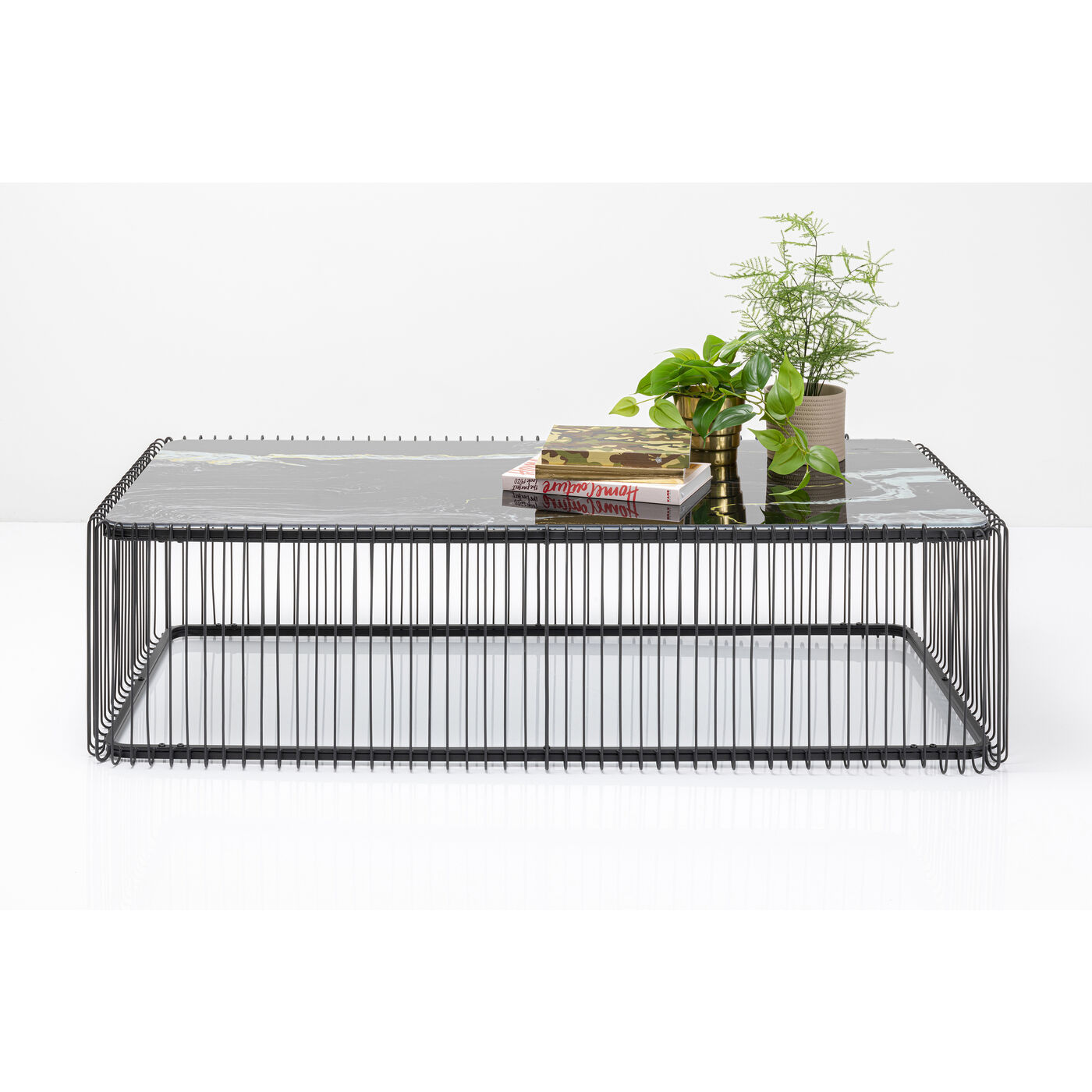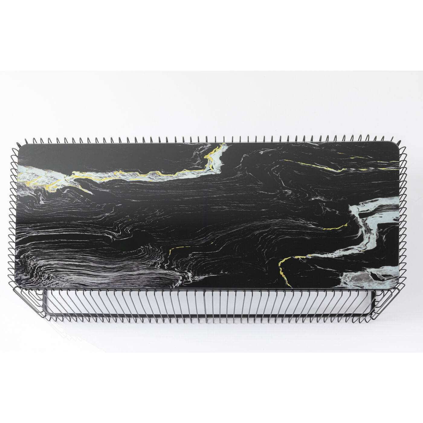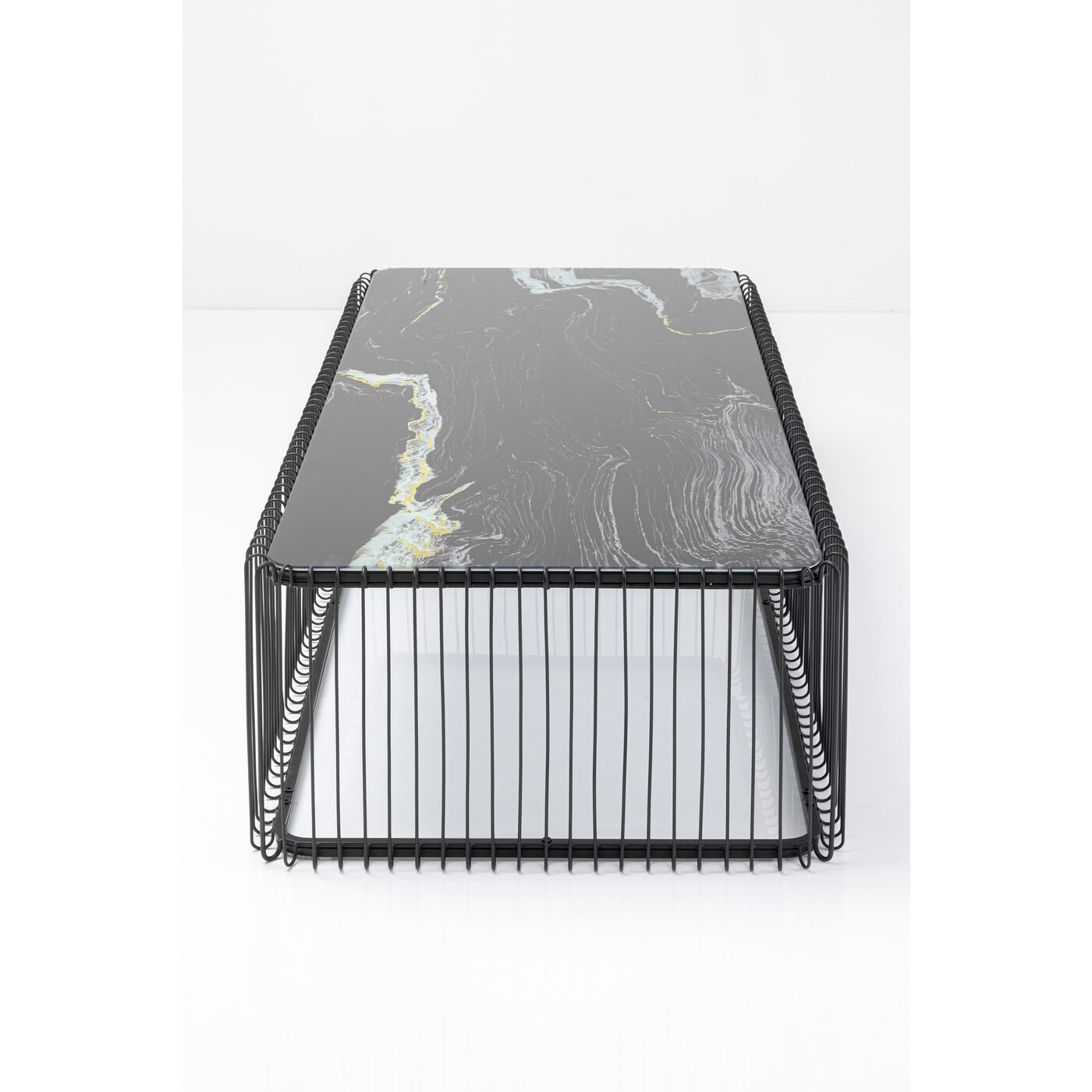 Votre canapé est aussi grand que vos exigences ? Alors cette table basse répondra à coup sûr à vos exigences : son généreux plateau de table en verre à l aspect marbre noir accueille sans peine livres de café, bougies ou verres à cocktail. Même sans décoration, elle attire tous les regards ! En effet, la table de salon combine le verre avec un piètement fin en métal noir. Devant chaque paysage de salon moderne, la grande table basse rayonne d élégance et de style. Pratique : avec son plateau en verre, vous n avez pas à craindre les taches, la surface se nettoie en un clin d œil avec un produit nettoyant pour verre courant.