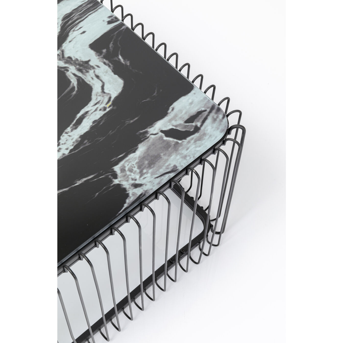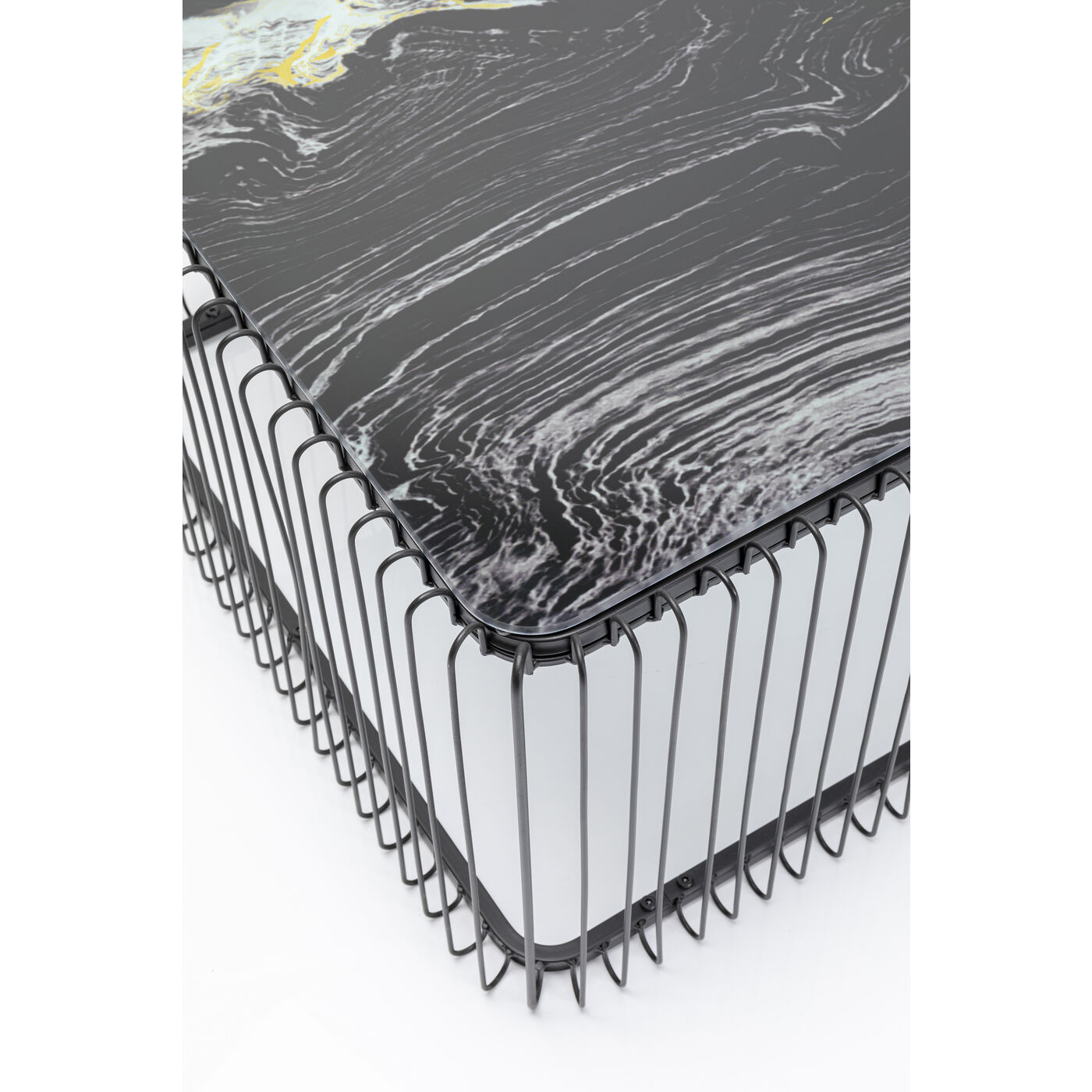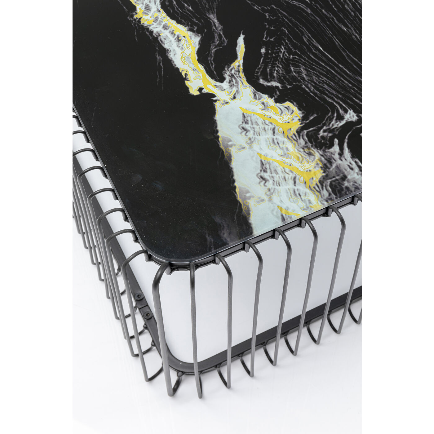 Votre canapé est aussi grand que vos exigences ? Alors cette table basse répondra à coup sûr à vos exigences : son généreux plateau de table en verre à l aspect marbre noir accueille sans peine livres de café, bougies ou verres à cocktail. Même sans décoration, elle attire tous les regards ! En effet, la table de salon combine le verre avec un piètement fin en métal noir. Devant chaque paysage de salon moderne, la grande table basse rayonne d élégance et de style. Pratique : avec son plateau en verre, vous n avez pas à craindre les taches, la surface se nettoie en un clin d œil avec un produit nettoyant pour verre courant.