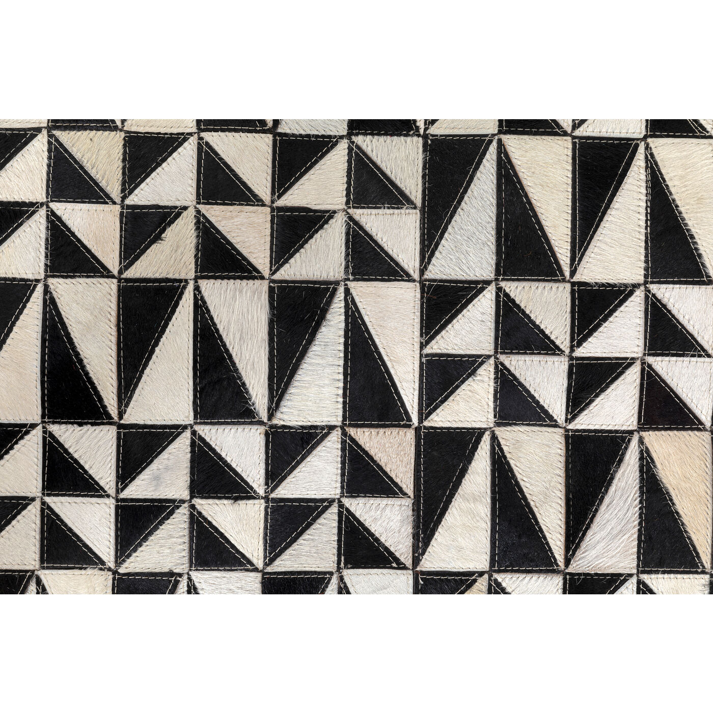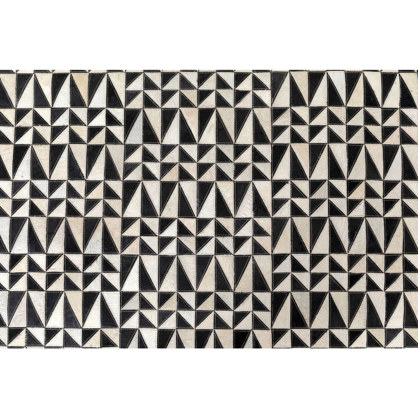 - Tapis rectangulaire en cuir noir et blanc effet patchwork faisant preuve d’un remarquable savoir-faire