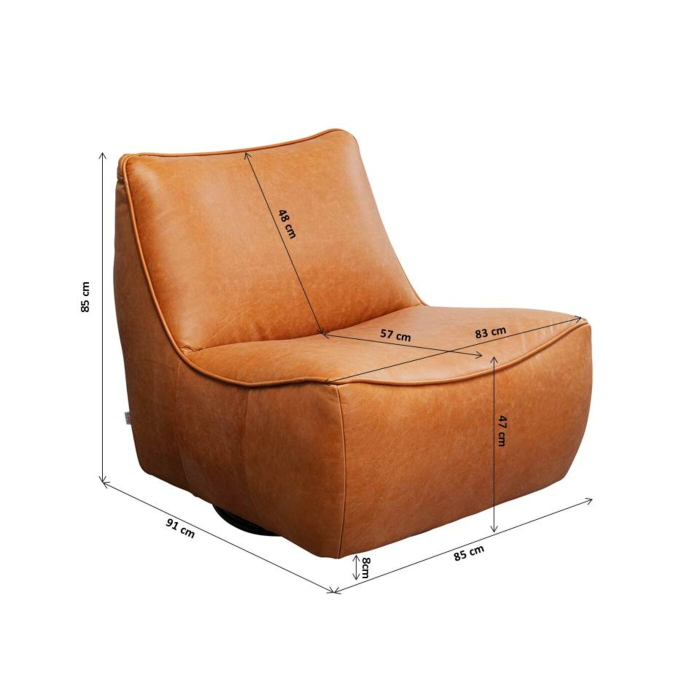 - Fauteuil pivotant en cuir marron, 85 x 91 x 85 centimètres (h/l/p)