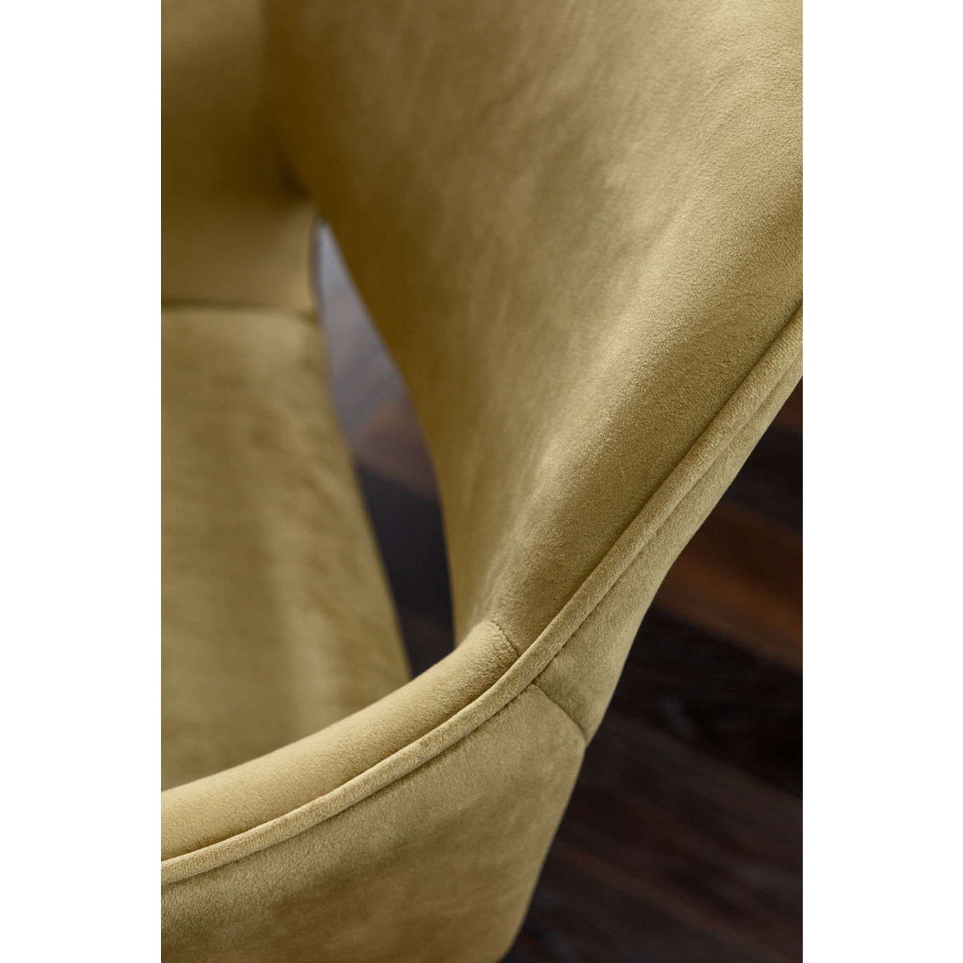Man darf ruhig Sessel zu ihm sagen. Schließlich ist dieser samtige Armlehnstuhl dank seiner durchgehenden Lehne und der knuffigen Polsterung mindestens genauso bequem. Seine Sitzhöhe macht den Unterschied. Elegant und leichtfüßig passt er zu Esstischen genauso gut wie zu Schreibtischen. Die Aussparung an der Rückenlehne und die leicht ausgestellten Beine verleihen ihm eine ungewöhnlich moderne Leichtigkeit.