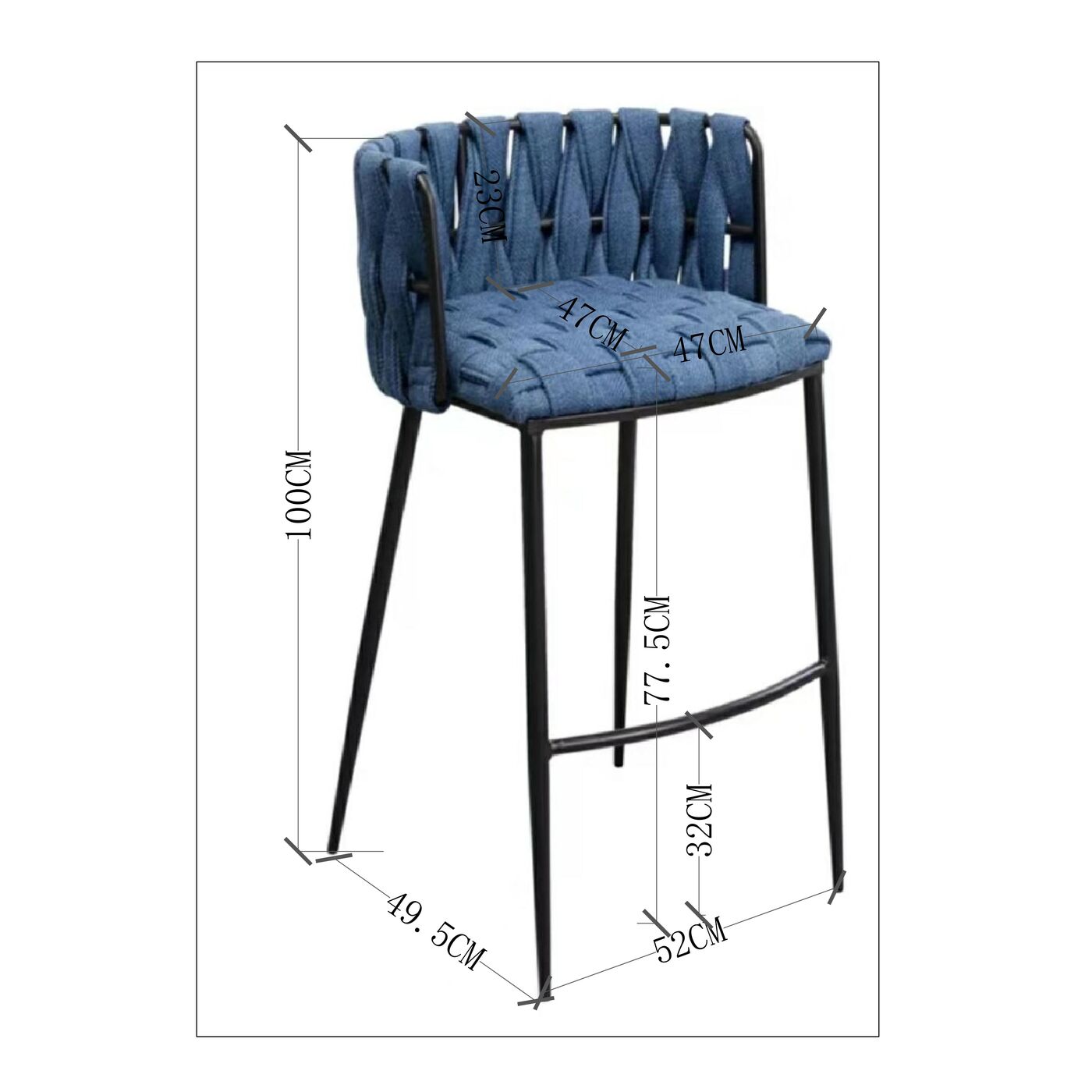 - Gepolsterter Barstuhl mit Lehne in Blau, 100 x 54 x 52 Zentimeter (H/B/T)