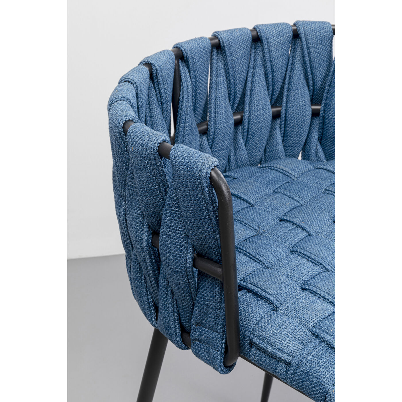Der gepolsterte Barhocker in strahlendem Blau bringt Wohnlichkeit in Ihr Ambiente.Auf ihm kann man es sich richtig gemütlich machen, sei es am Hochtisch, am Küchentresen oder der Hausbar. Der strukturierte, haptisch angenehme Bezug und die durchgehende Arm- und Rückenlehne sorgen für hohen Sitzkomfort und laden zum Verweilen ein. Abgerundet durch seine robusten Stahlbeine, die nicht nur stilvoll aussehen, sondern auch für Stabilität und Langlebigkeit sorgen, verleiht der Hochstuhl eine moderne und gehobene Atmosphäre.