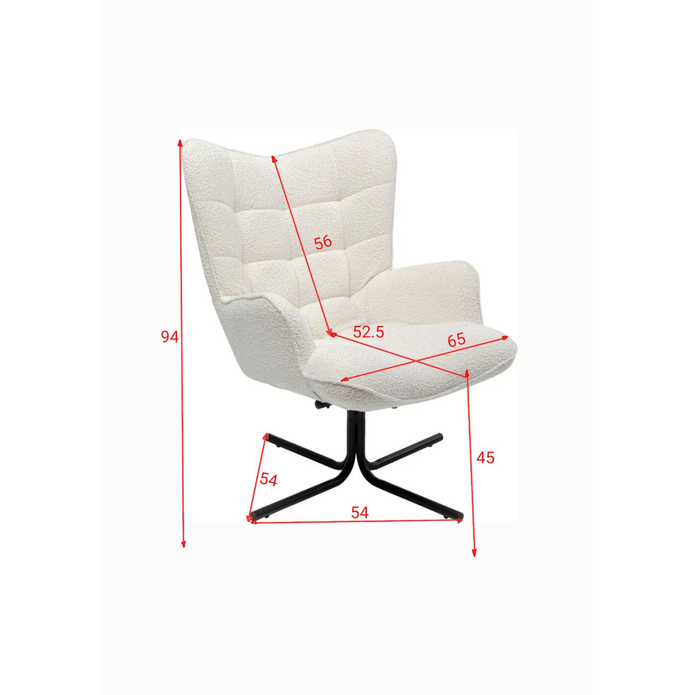 - Gepolsterter Drehsessel mit Bouclé-Bezug in Creme-Weiß, 95 x 82 x 73 Zentimeter (H/B/T)
