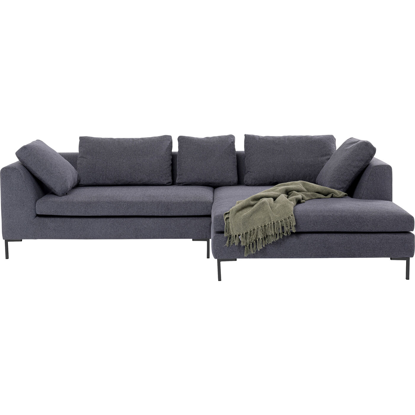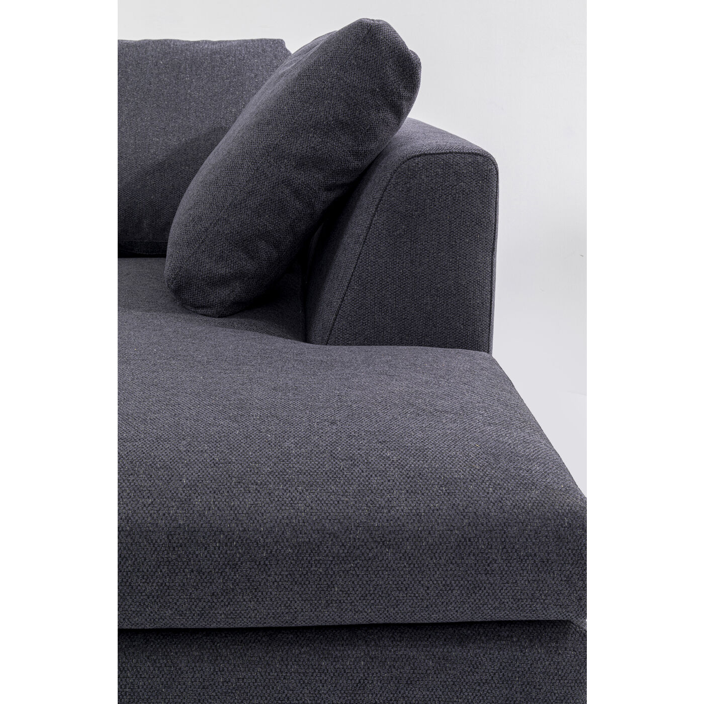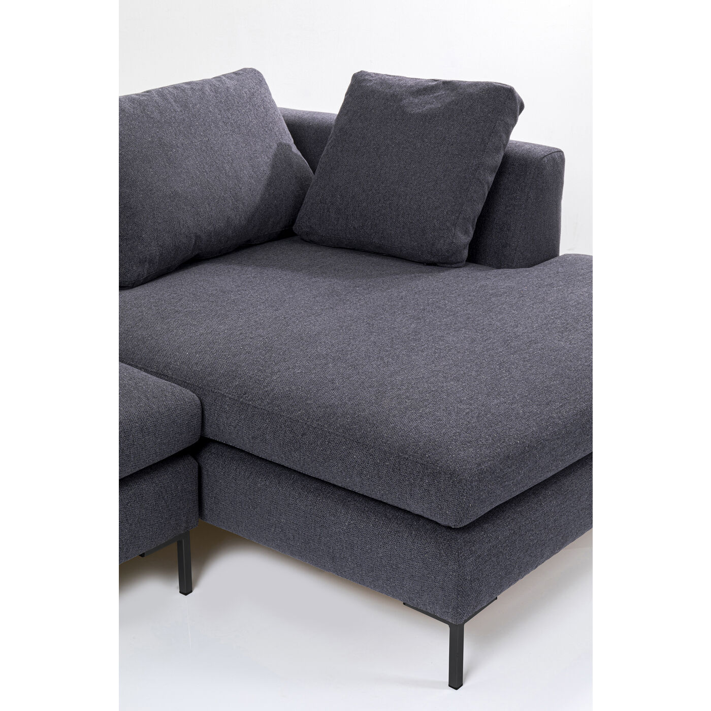 - Ecksofa in dunklem Grau inklusive fünf Kissen für maximalen Sitzkomfort