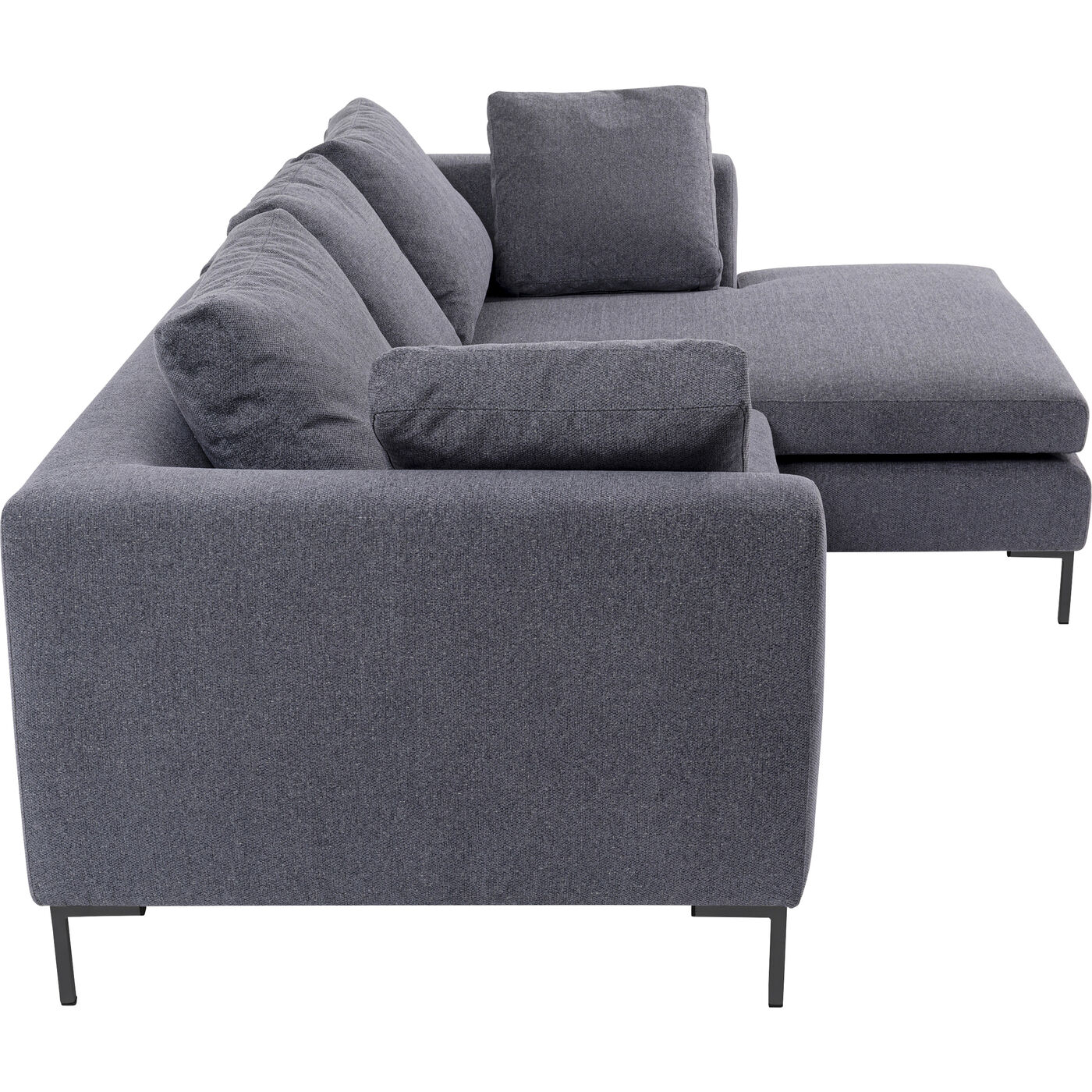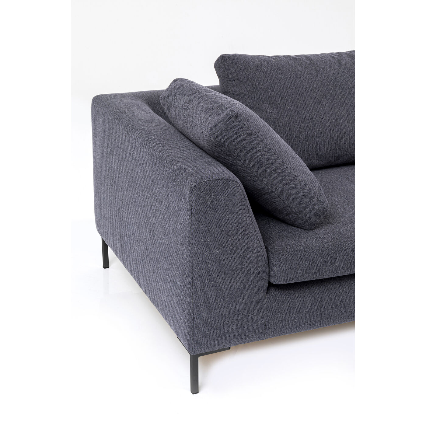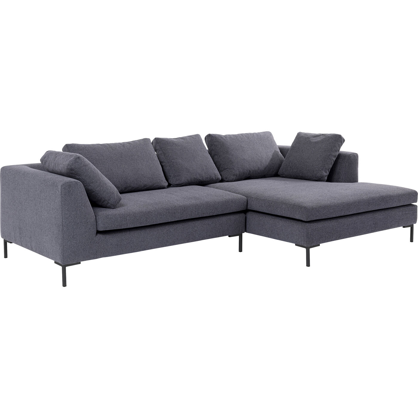 - Ecksofa in dunklem Grau inklusive fünf Kissen für maximalen Sitzkomfort