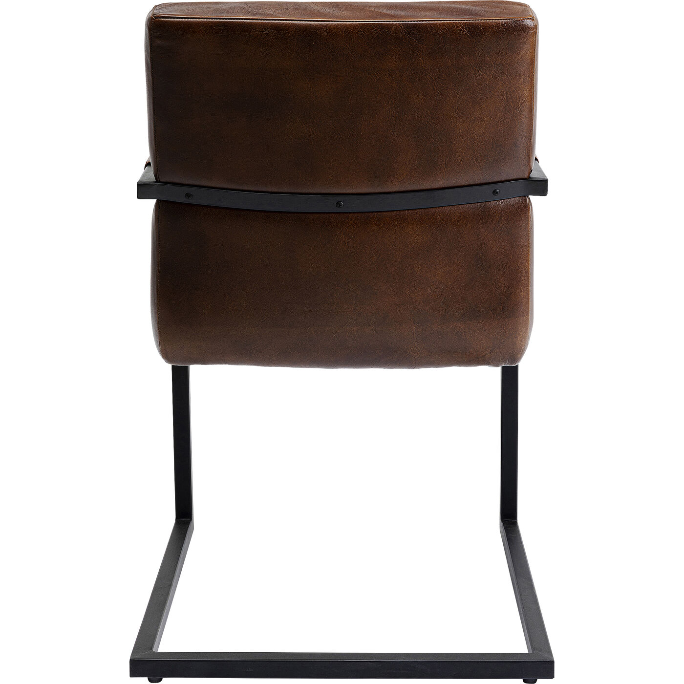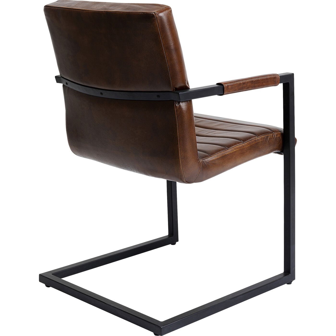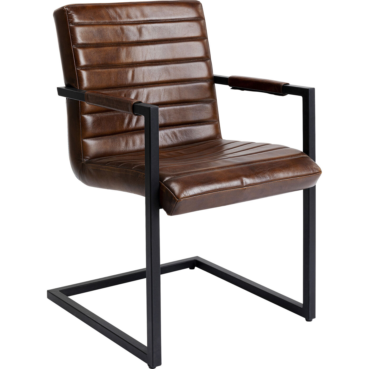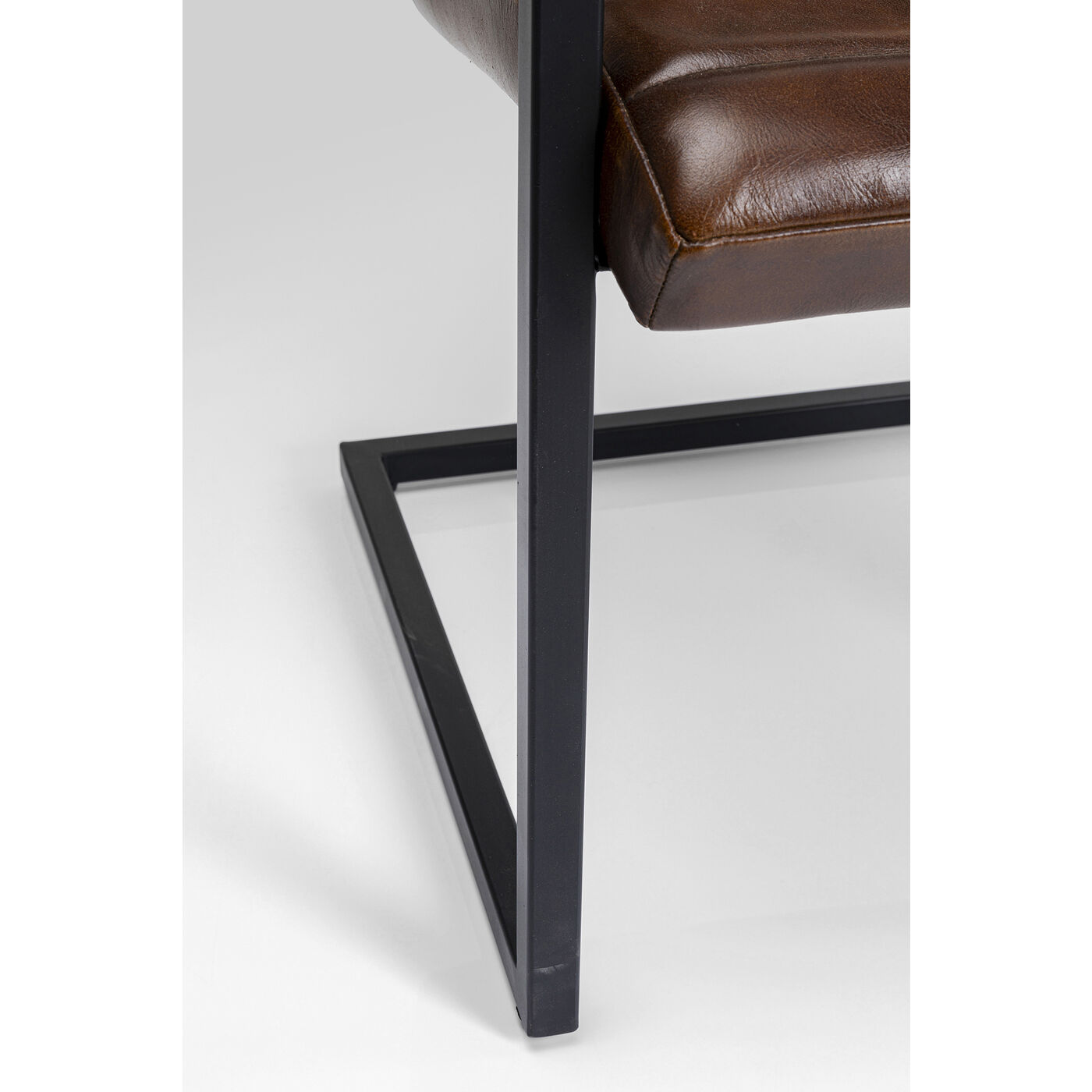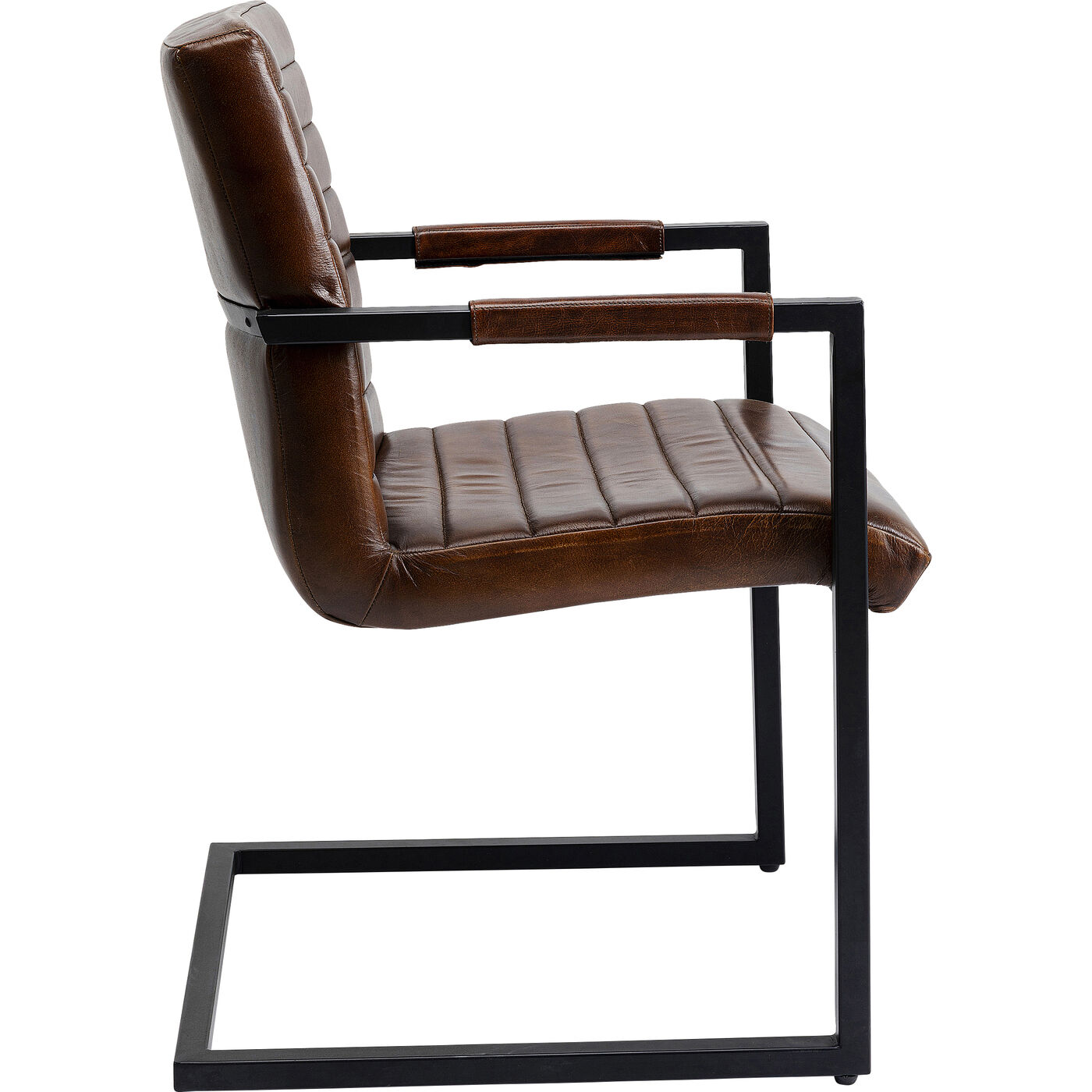 - Brauner Armlehnstuhl mit schwarzem Gestell aus Metall im Freischwinger-Design