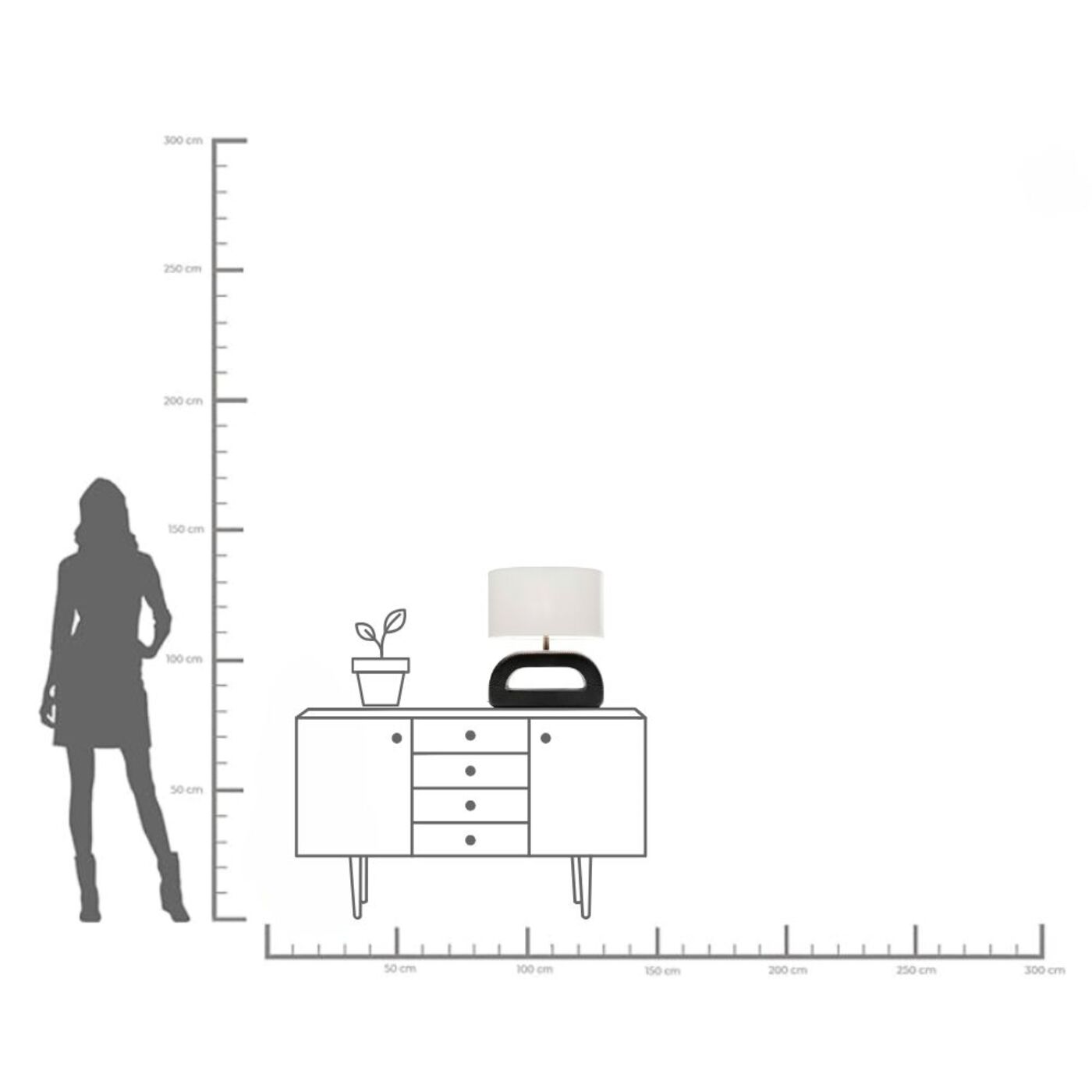 Think big! Machen Sie aus purer Beleuchtung ein dekoratives Power-Statement. Sie suchen noch eine Wohnzimmerlampe für das Sideboard? Dann empfehlen unsere Interior Designer, bei der Lampen-Auswahl nicht auf zu kleine Exemplare zu setzen, damit die Proportionen stimmen. Unsere moderne Tischlampe ist 52cm hoch, knapp 46cm breit und ca. 26cm tief und hat einen ovalen Schirm. Somit passt sie nicht nur auf das Sideboard, sondern auch auf die Fensterbank, das Kaminsims oder eine schmale Kommode. 230 V, 50/60 Hz, Fassung E27, Anzahl Leuchtmittel 1, max. 60 Watt, Leuchtmittel nicht inklusive, Leuchtmittel austauschbar