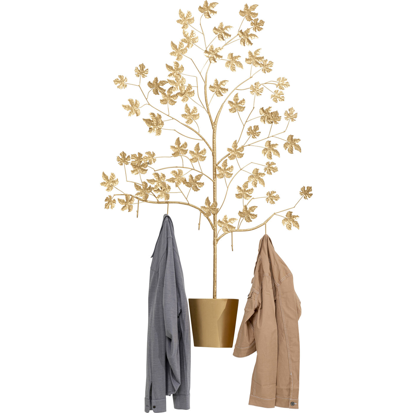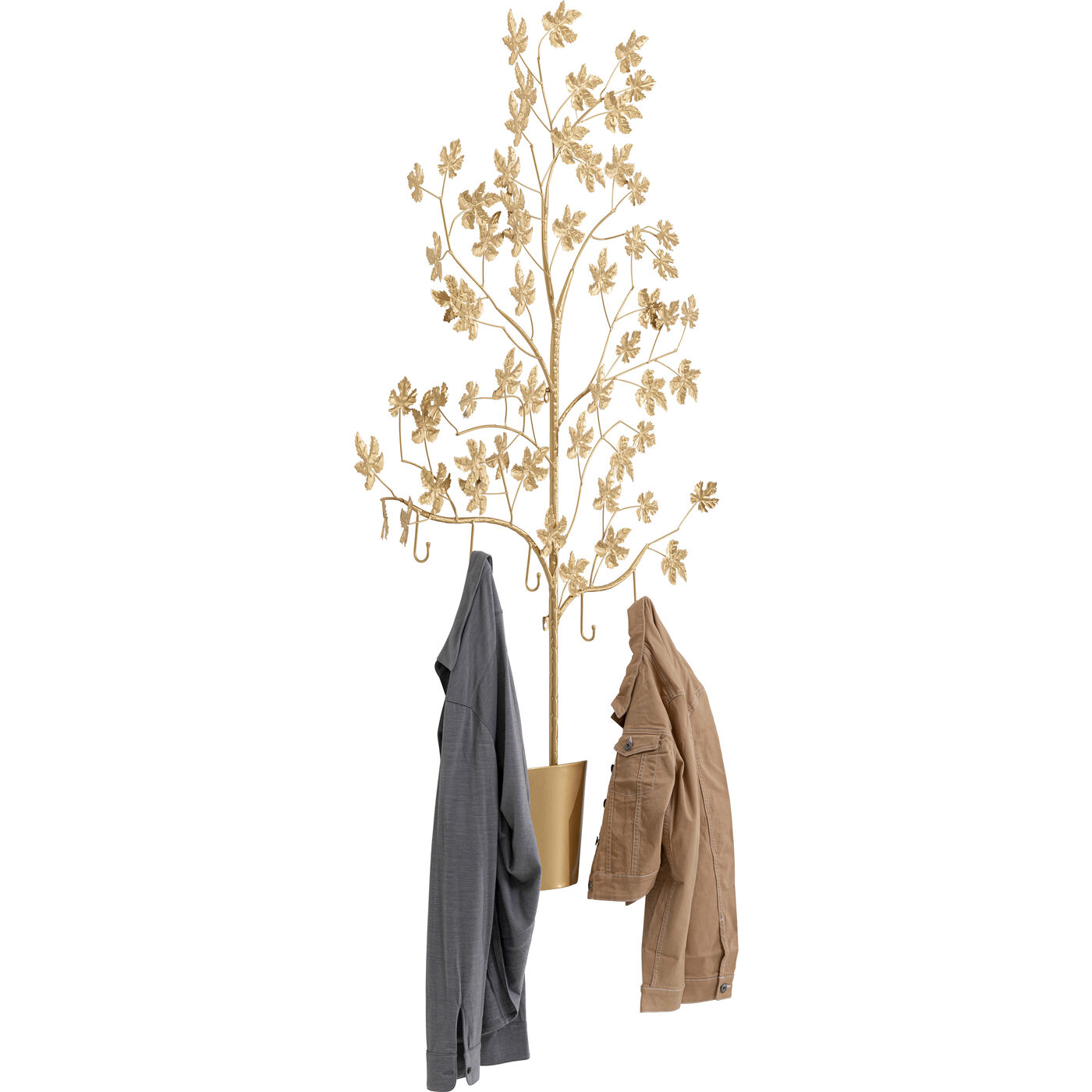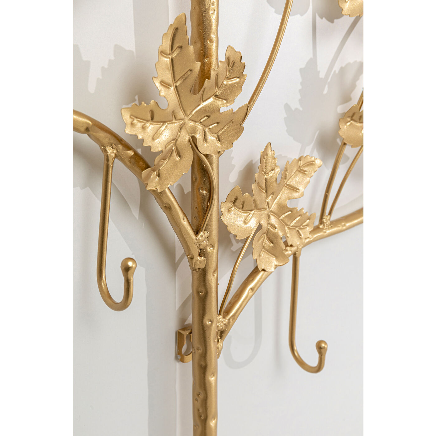 Diese zauberhafte Flur-Garderobe gehört zur Kollektion Leafline und besticht mit zartem Glamour und fein gearbeiteten Blätter-Details. Die goldene Farbe der stabilen Konstruktion aus beschichtetem Stahl verleiht jeder Wand ein glanzvolles, optisches Highlight. Praktisch ist, dass für die vertikale Befestigung bereits Aufhänger in die Stahlkonstruktion integriert sind. Die Wandmontage der Garderobe in Baumform ist damit ganz leicht.