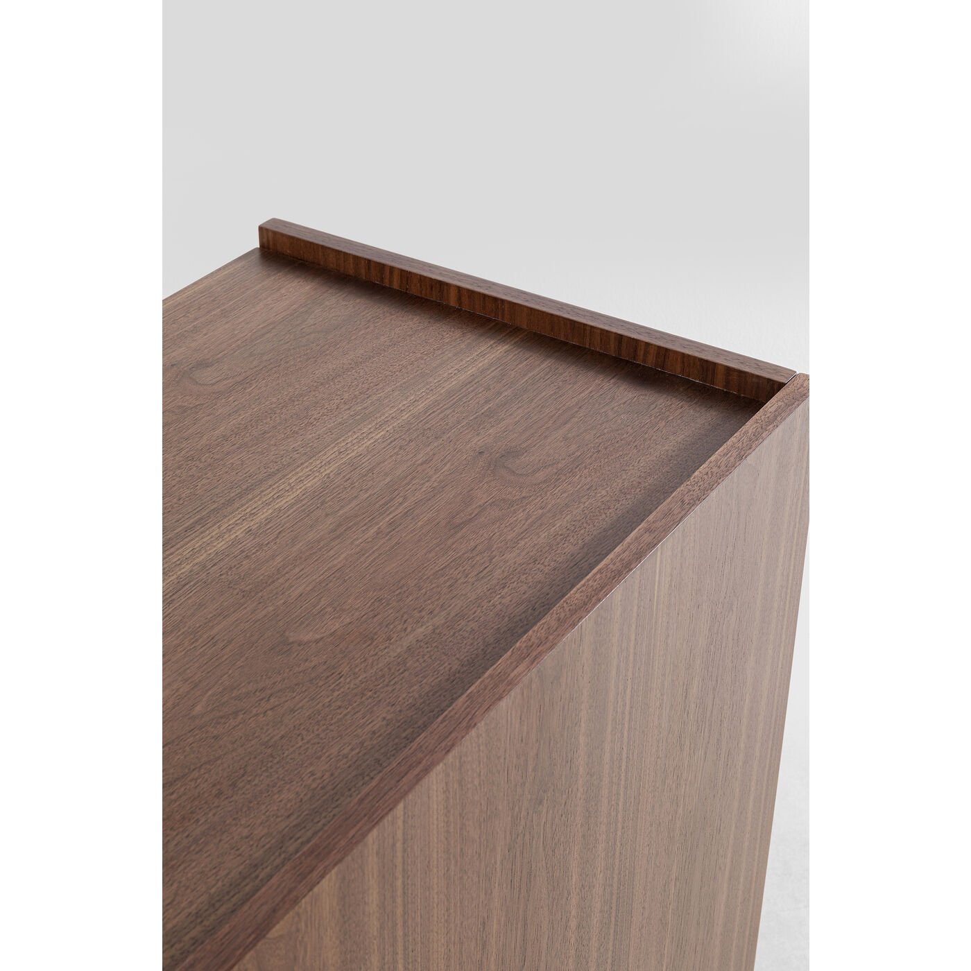 - Walnuss-Echtholzfurnier mit markanten Edelstahl-Details