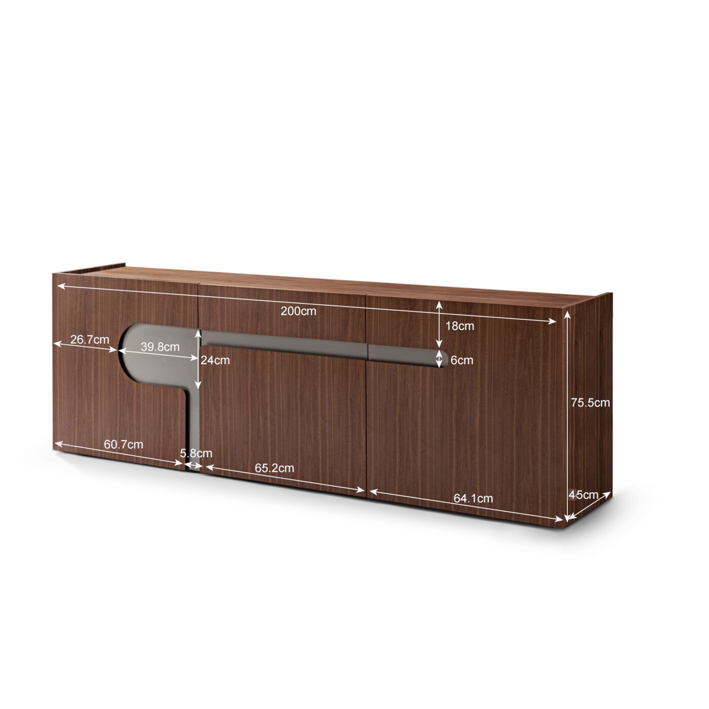 - Braunes Sideboard aus Holz und Metall, 76 x 200 x 45 Zentimeter (H/B/T)