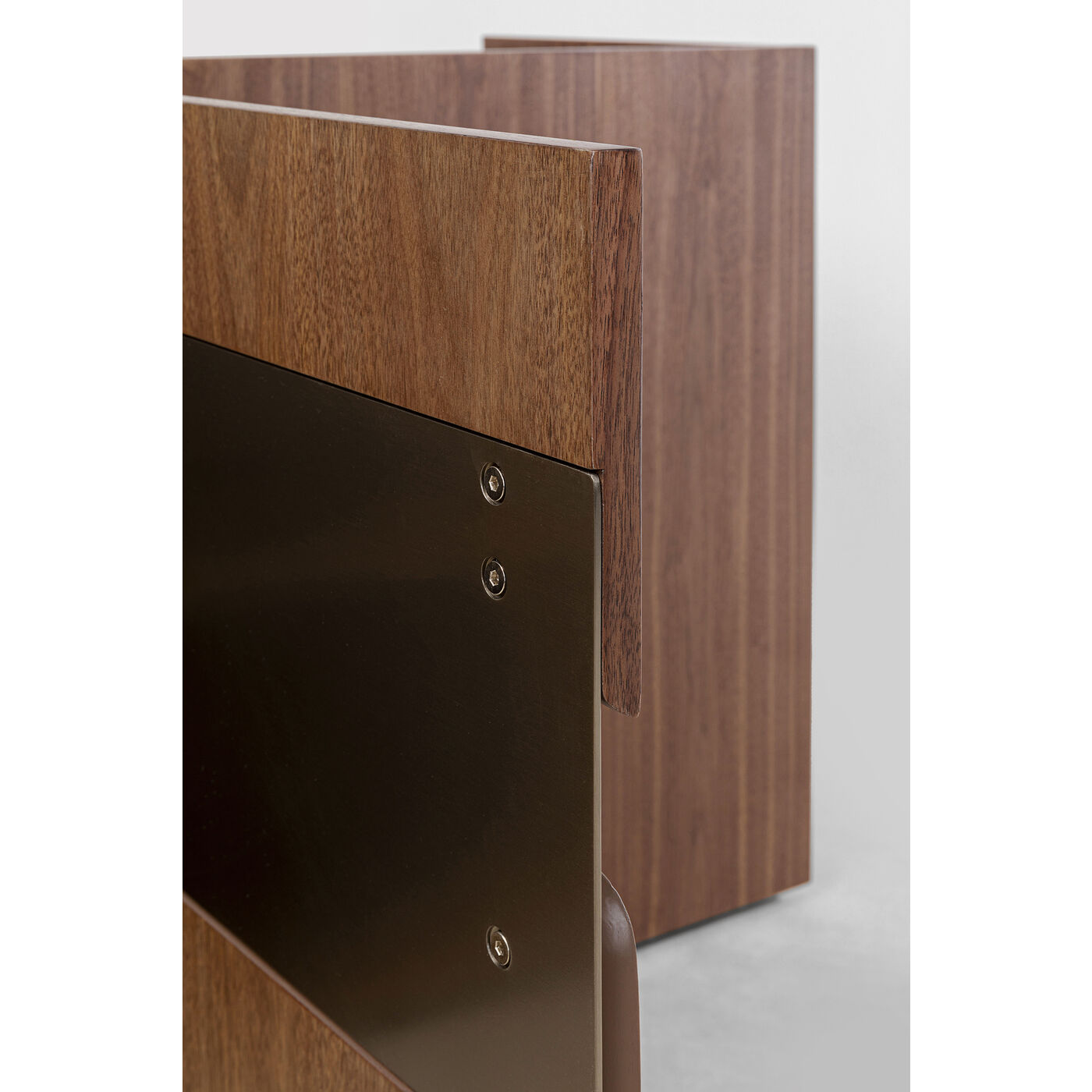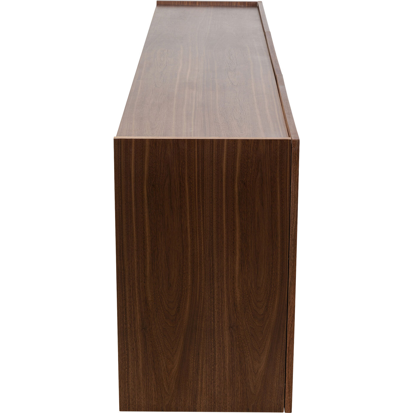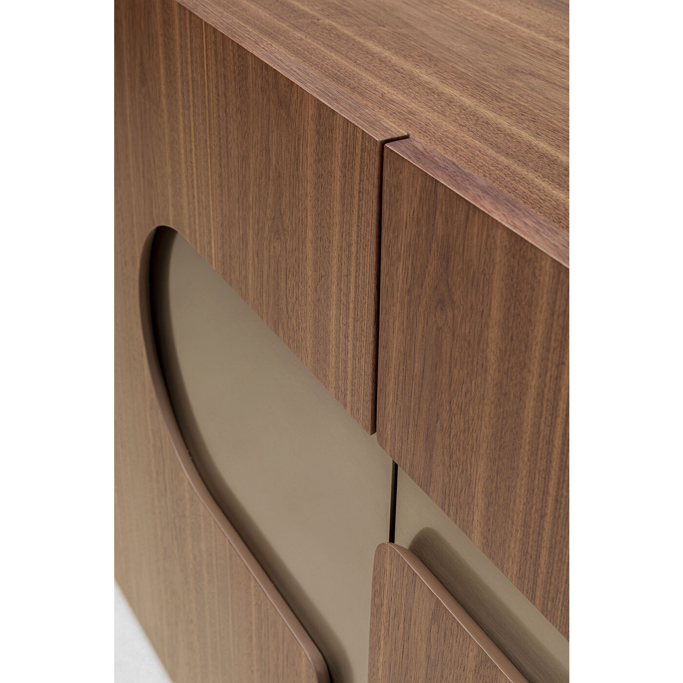 Dieses braune Sideboard ist ein wunderschönes Möbelstück für moderne Wohnräume! Mit Walnuss-Holz gefertigt und mit Metall-Dekor an den Fronten übernimmt Sideboard Bravo die Hauptrolle bei der Einrichtung des Wohnzimmers. Mit drei Türen und jeweils zwei Fachböden bietet es genügend Platz für Elektronik, Dokumente und weitere Aufbewahrung. Es kann vielfältig eingesetzt werden, ob als TV- Schrank im Wohnzimmer oder Kommode im Schlafzimmer. Das Sideboard wird praktischerweise montiert geliefert.