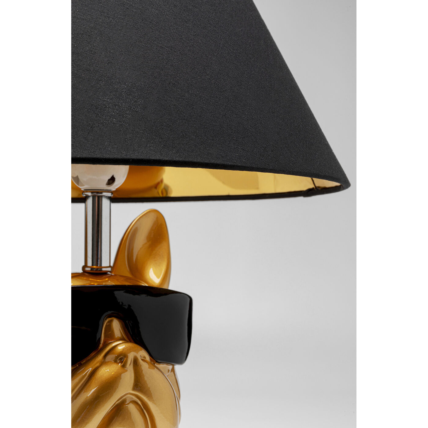 Diese außergewöhnliche Tischleuchte zieht mit ihrem frechen Hunde-Motiv im lebendigen Graffiti-Stil alle Blicke auf sich und verleiht jedem Raum eine verspielte, urbane Note. Der coole Lampenfuß mit lässiger Sonnenbrille ist ein echter Hingucker und bringt dynamische Energie ins Interieur. Der elegante schwarze Schirm mit goldglänzender Innenseite spendet ein warmes, behagliches Licht und schafft eine einladende Atmosphäre. Perfekt als markanter Akzent auf Nachttischen, Sideboards oder im Flur, verbindet diese Lampe künstlerischen Charakter mit vielseitiger Funktionalität und peppt moderne Wohnlandschaften gekonnt auf. 230 V, 50/60 Hz, Leuchtmitteltyp LED, Fassung E27, Anzahl Leuchtmittel 1, max. 40 Watt, Leuchtmittel nicht inklusive, Leuchtmittel austauschbar