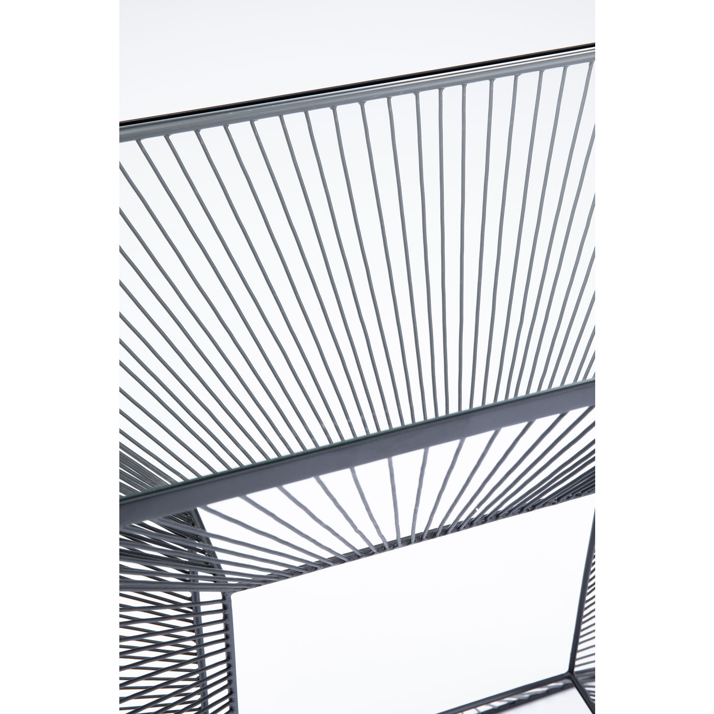 - Konsole mit Glasplatte, die durch ihr grafisches Stahldraht-Gestell wie ein modernes Kunstobjekt wirkt