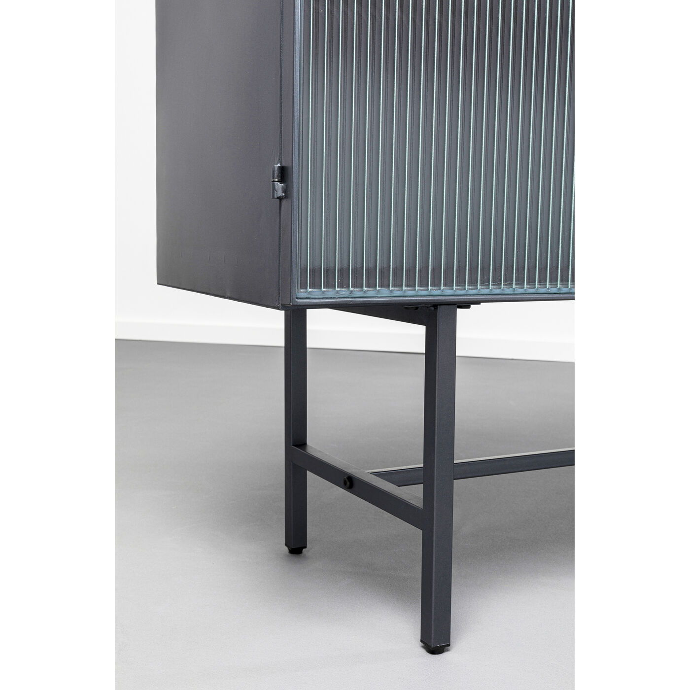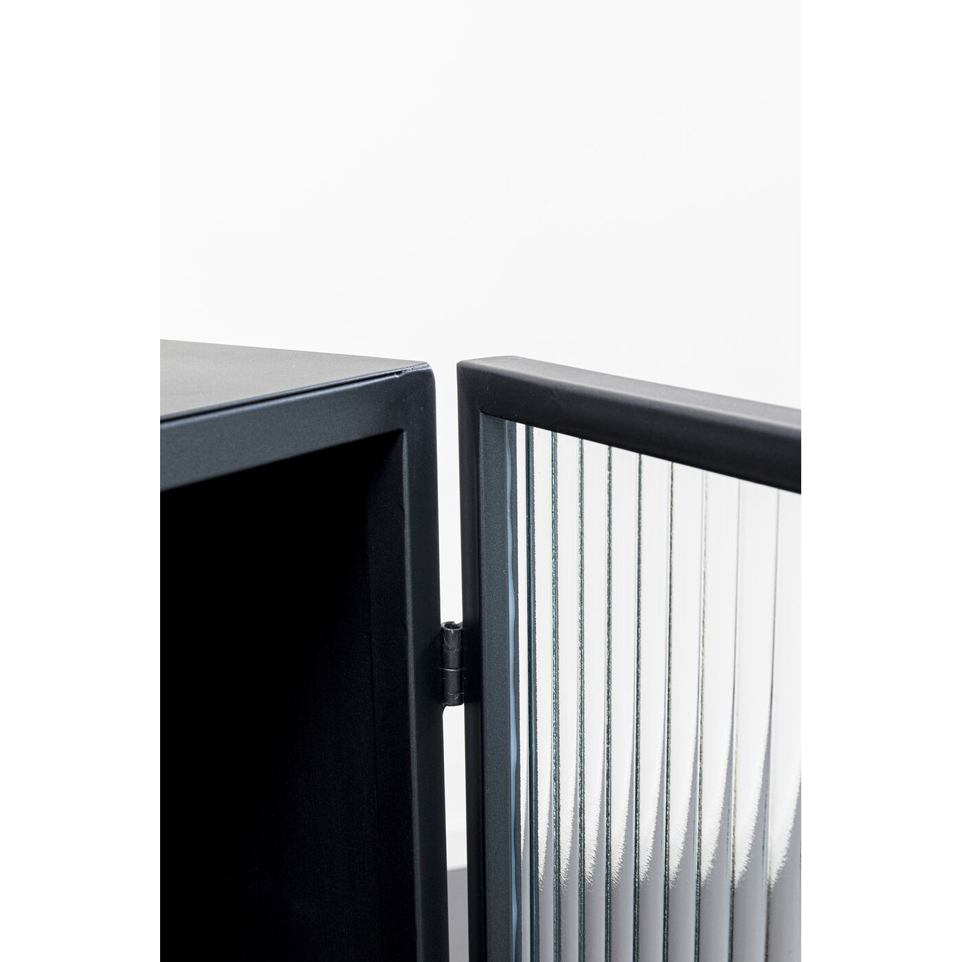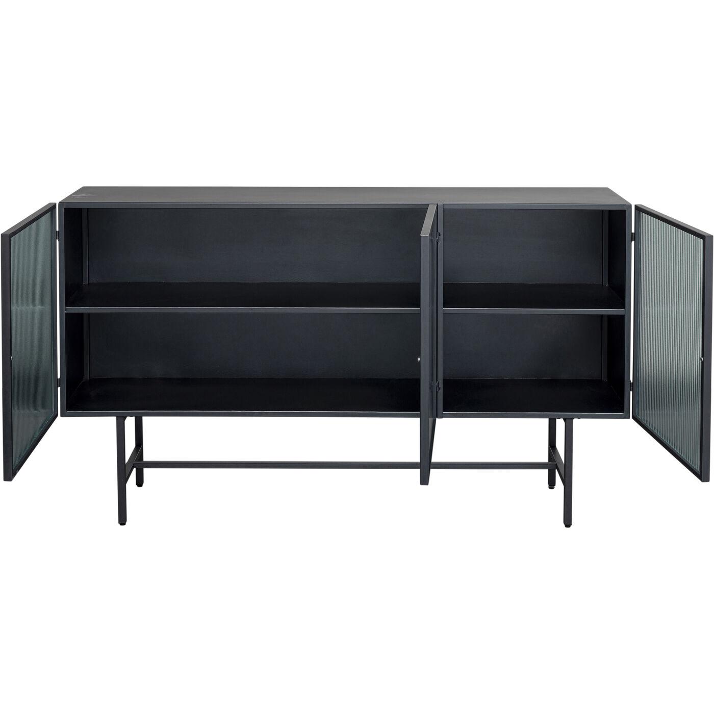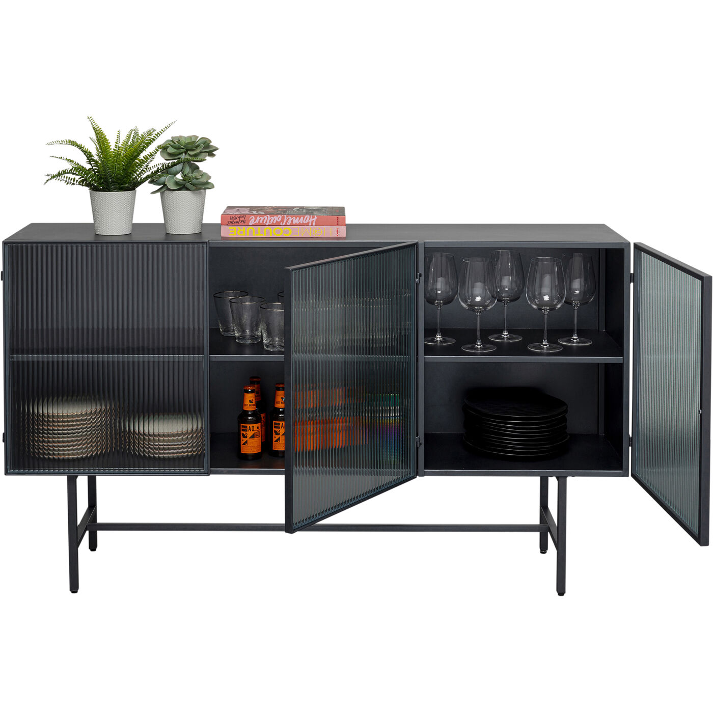 La collezione di mobili San Diego ridefinisce lo stile di vita industriale, rendendolo sottile e leggero. I vari modelli di mobili giocano sapientemente con l'acciaio, a volte in combinazione con vetri tagliati a onda, a volte con profili in legno nero. Le linee pulite e l'uso sofisticato dei materiali rendono la collezione San Diego una dichiarazione di stile abitativo moderno. Questa credenza con le sue ante in vetro seghettato adornerà qualsiasi soggiorno e vi convincerà con i suoi materiali solidi e la sua funzione di mobile contenitore. La credenza in acciaio è particolarmente adatta per riporre bicchieri, stoviglie o vasi in soggiorno e sala da pranzo.
