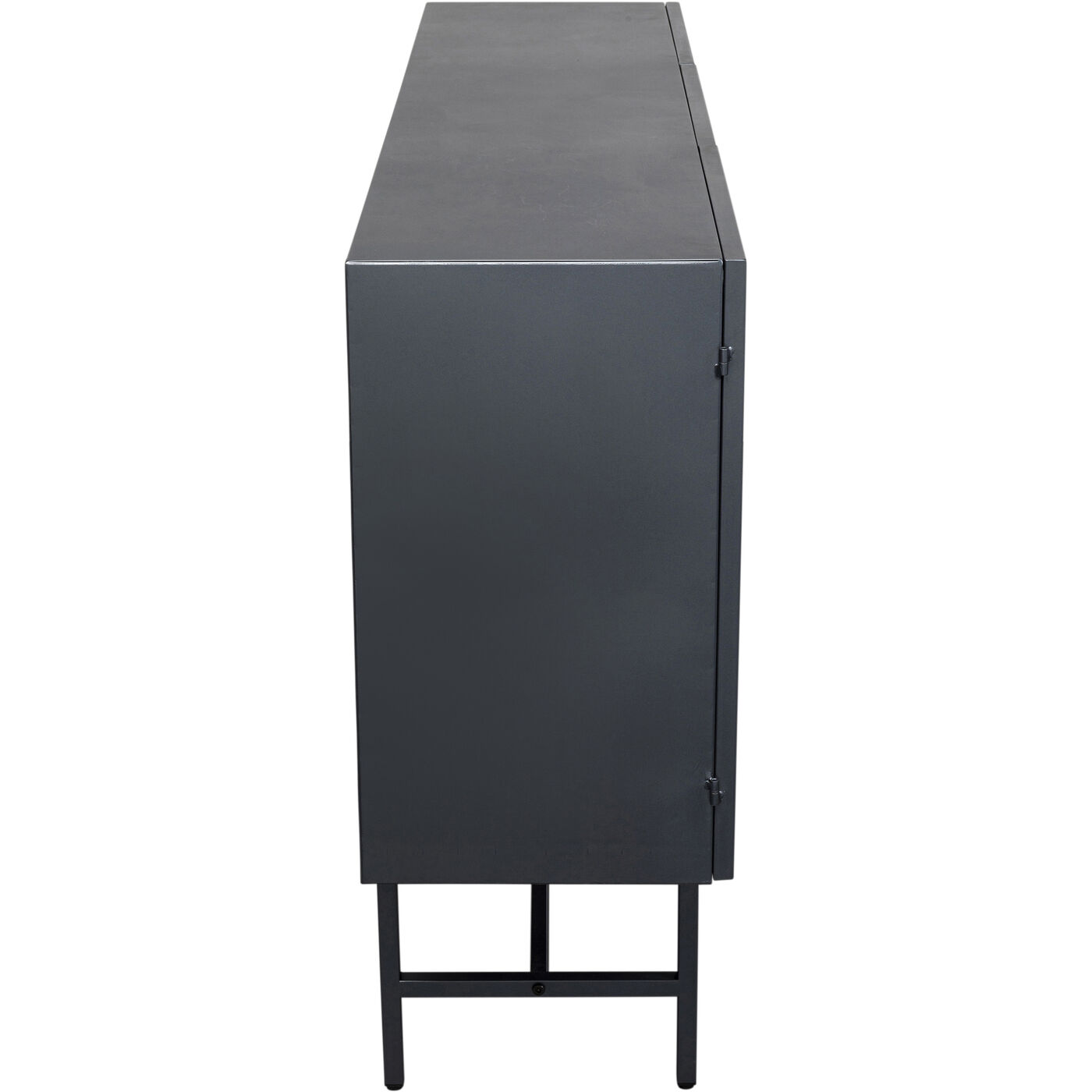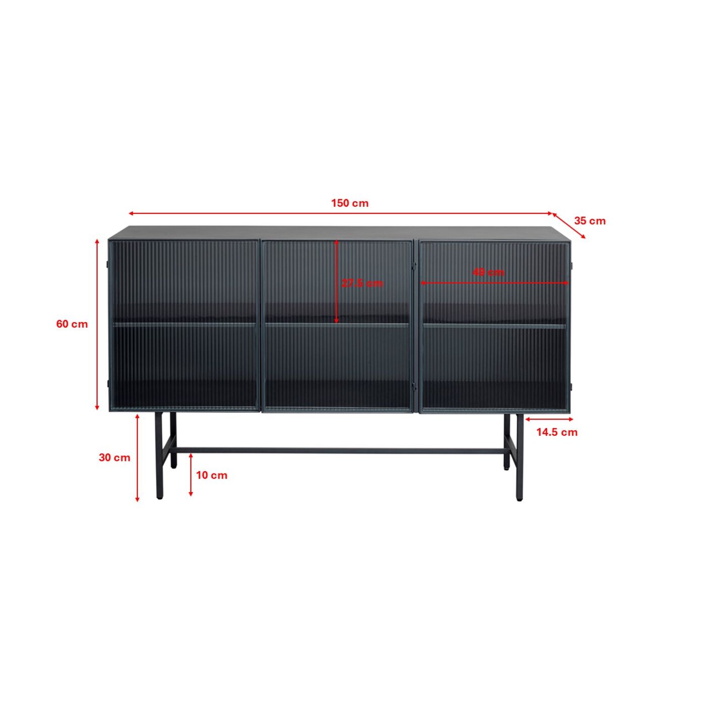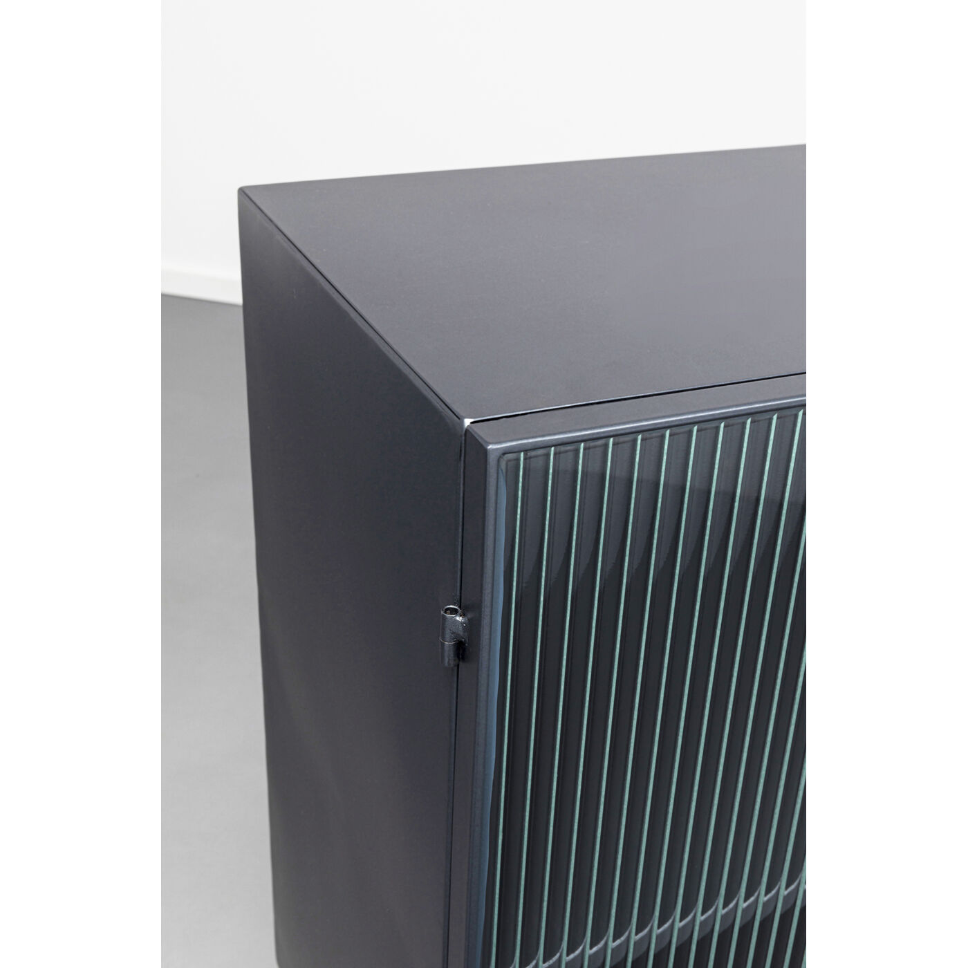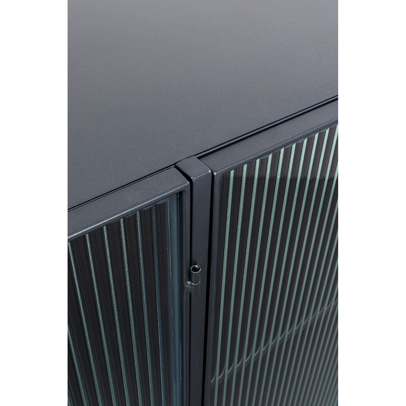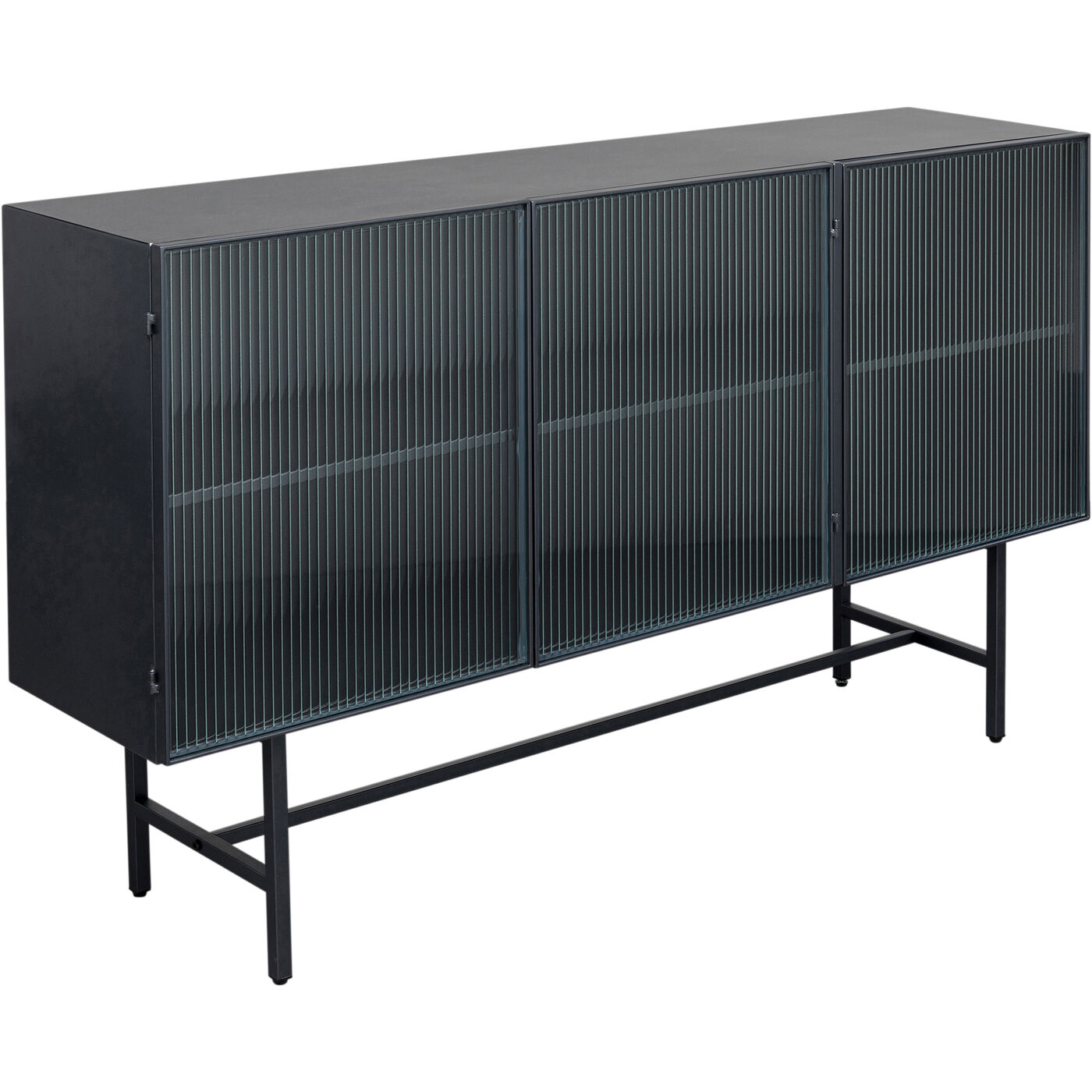 La collezione di mobili San Diego ridefinisce lo stile di vita industriale, rendendolo sottile e leggero. I vari modelli di mobili giocano sapientemente con l'acciaio, a volte in combinazione con vetri tagliati a onda, a volte con profili in legno nero. Le linee pulite e l'uso sofisticato dei materiali rendono la collezione San Diego una dichiarazione di stile abitativo moderno. Questa credenza con le sue ante in vetro seghettato adornerà qualsiasi soggiorno e vi convincerà con i suoi materiali solidi e la sua funzione di mobile contenitore. La credenza in acciaio è particolarmente adatta per riporre bicchieri, stoviglie o vasi in soggiorno e sala da pranzo.