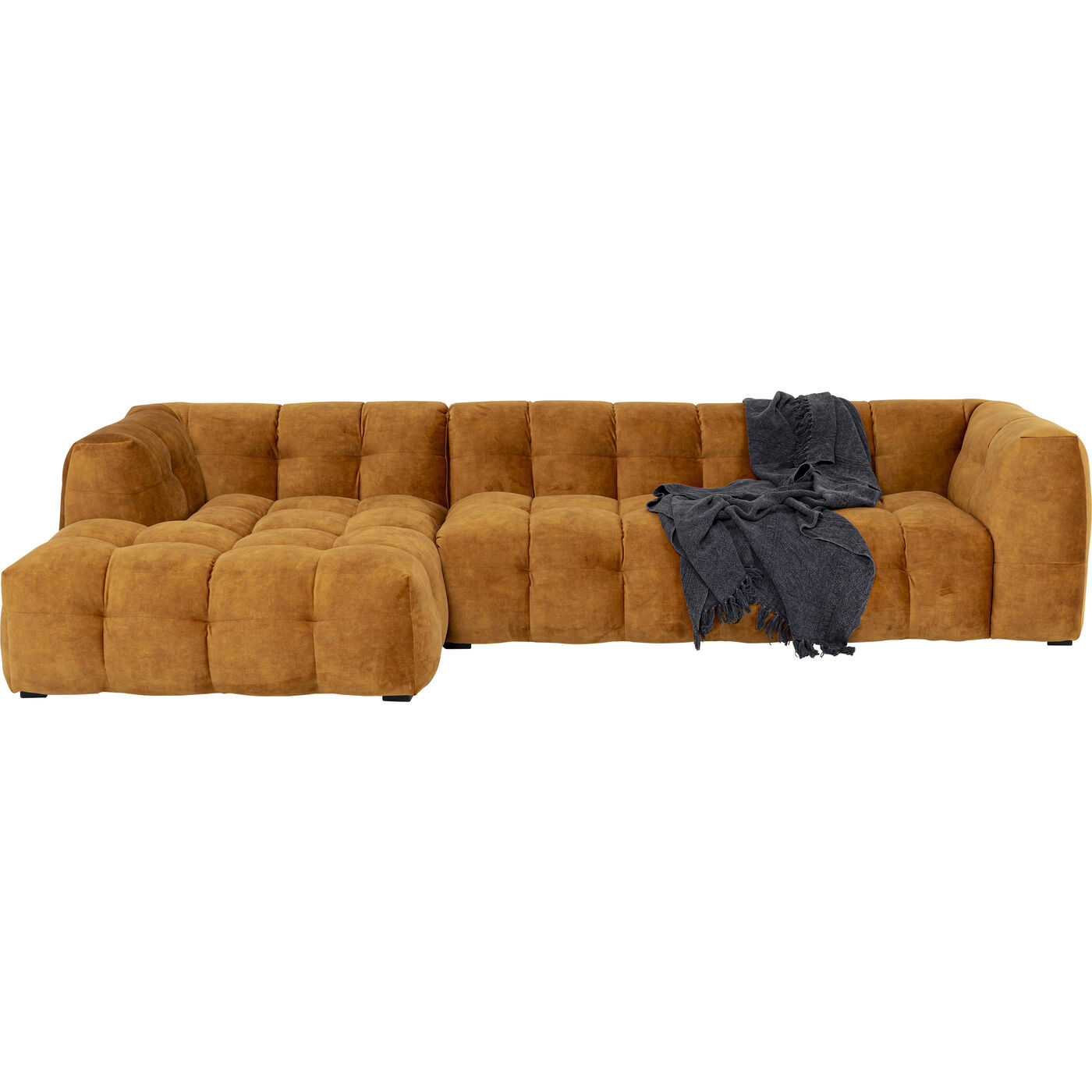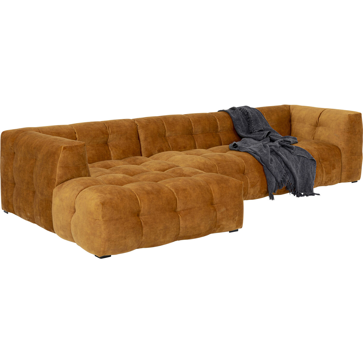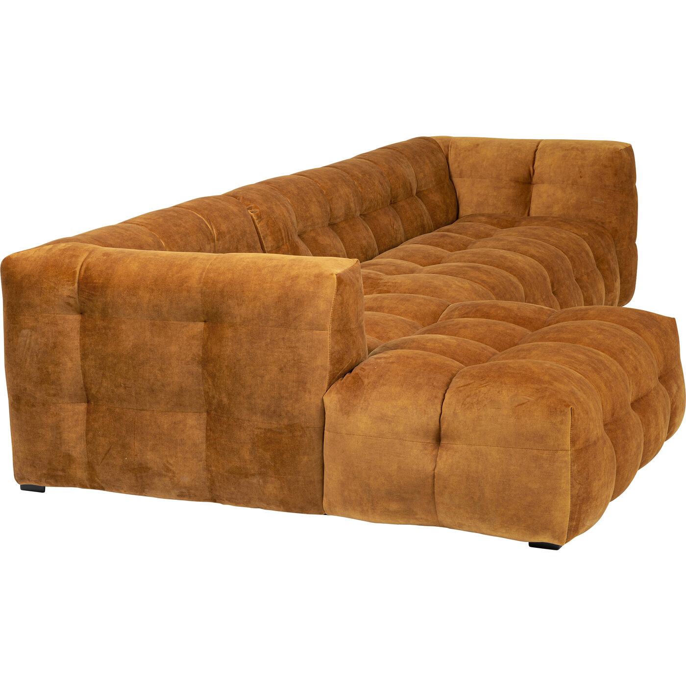 - Divano angolare a terra di colore marrone dorato con pouf a sinistra, 68 x 320 x 170 centimetri (a/l/p)