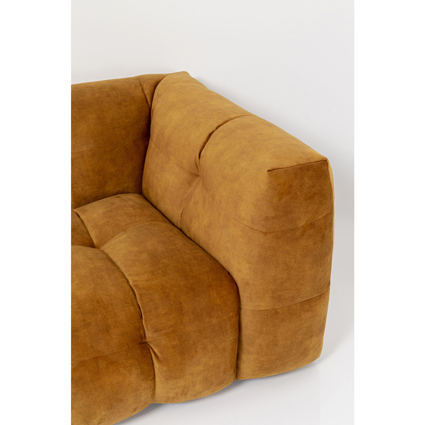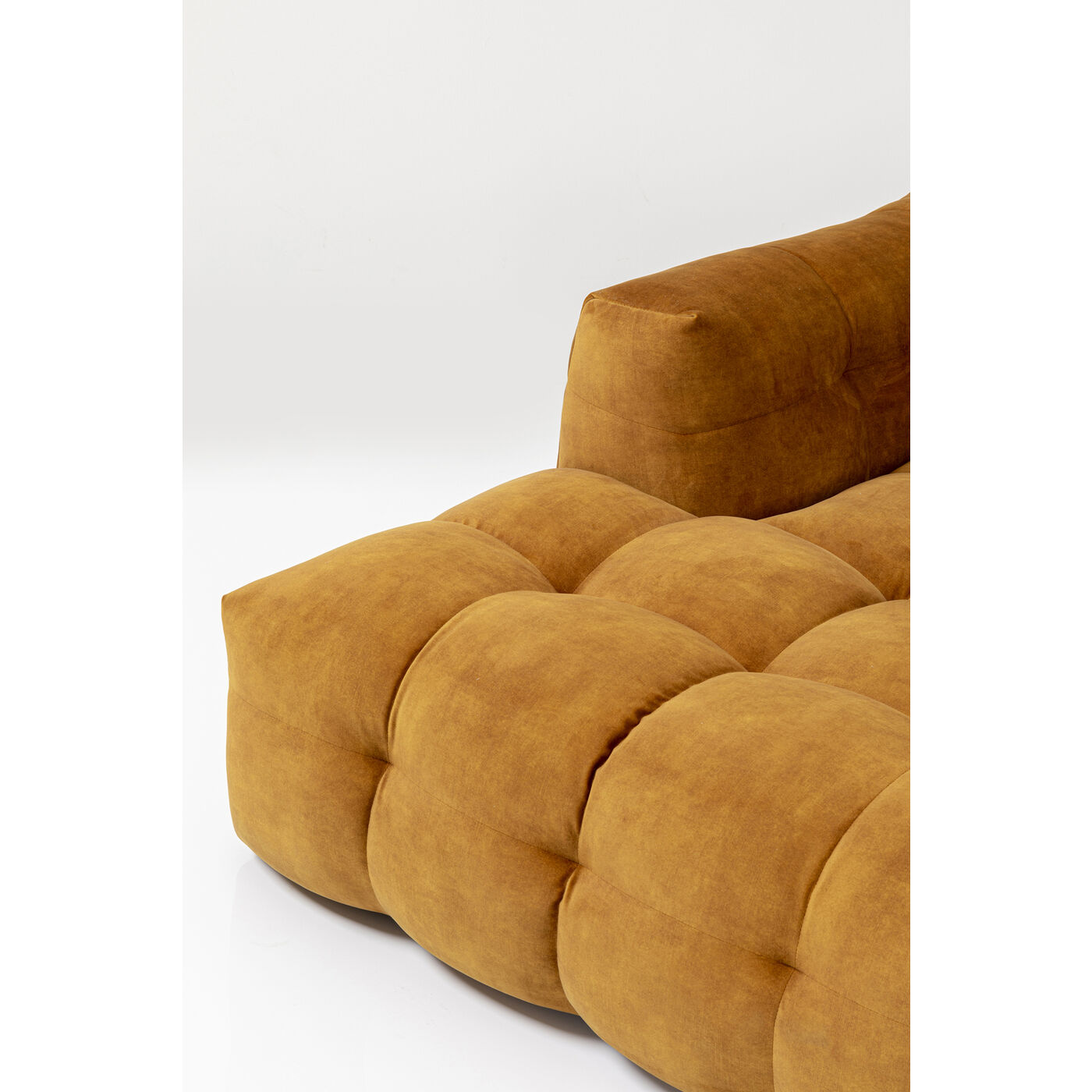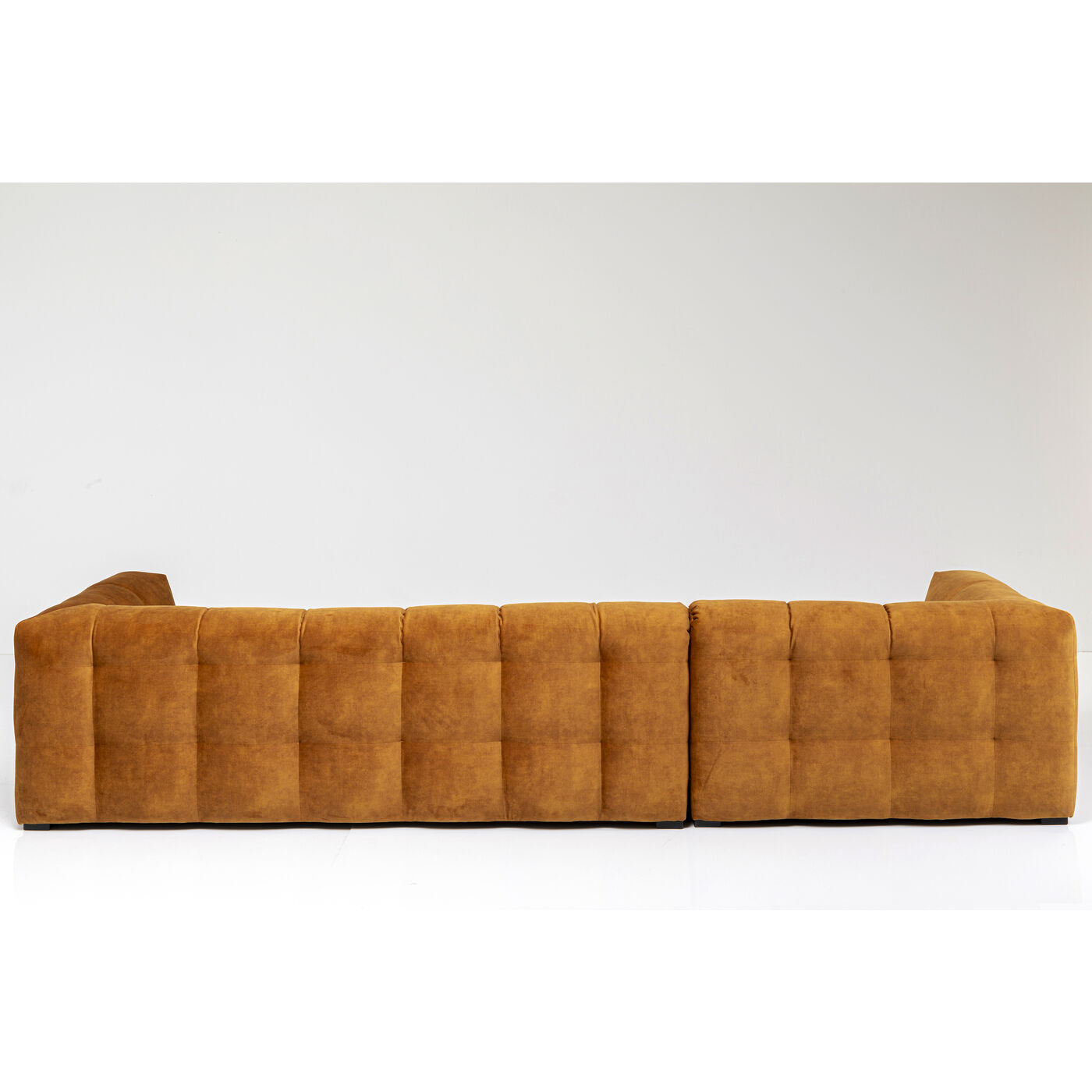 - Divano angolare a terra di colore marrone dorato con pouf a sinistra, 68 x 320 x 170 centimetri (a/l/p)