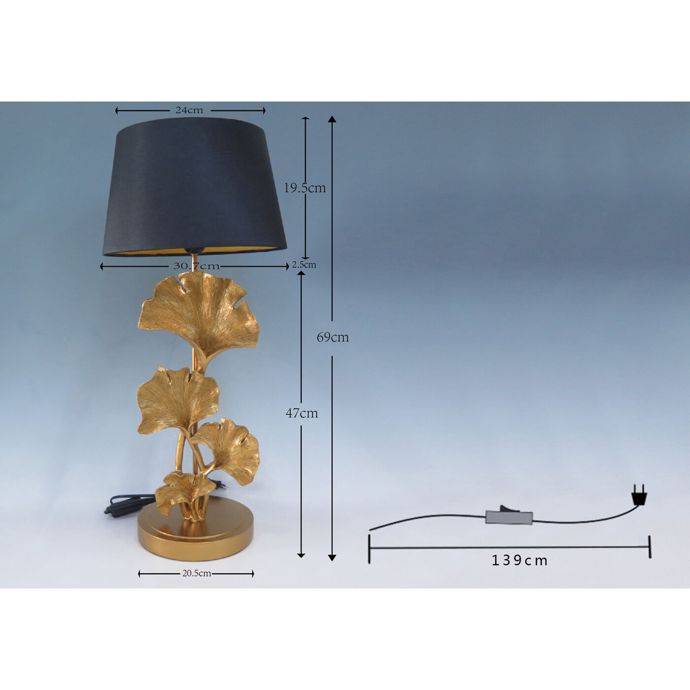 - Der Leuchtenfuß mit Ginkgo-Blättern macht die Lampe zum Designer-Piece