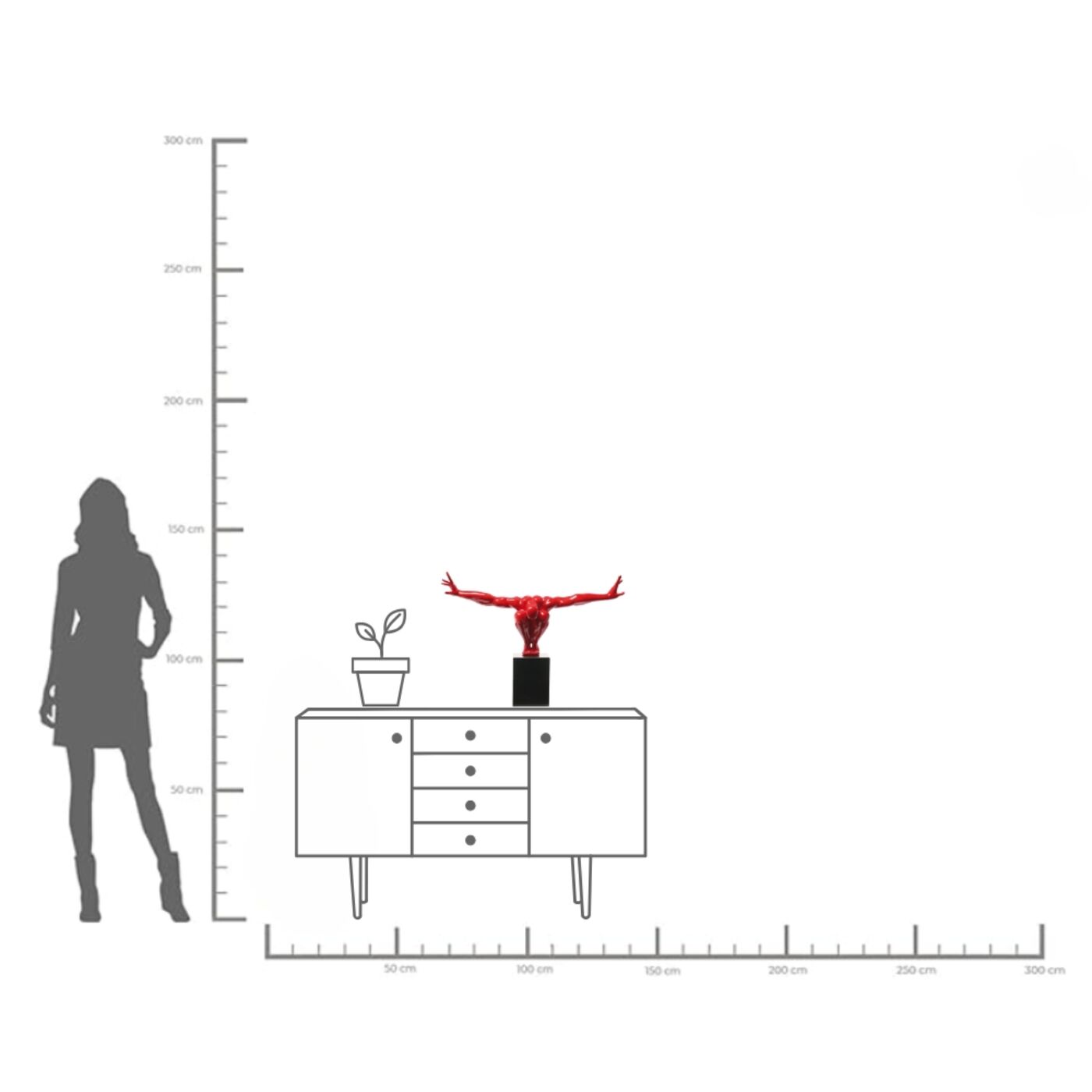 Potere maschile in rosso La potenza muscolare estetica in rosso intenso si estende su una base di marmo nero. Il corpo umano con tutta la sua tensione muscolare come una scultura tridimensionale. Il rosso di questa rappresentazione del corpo, pieno di mascolinità, porta la morbidezza del movimento imminente nel flusso. Un'istantanea atletica che potrebbe dissolversi in qualsiasi momento nel salto. L'oggetto decorativo Athlete Red esprime la mascolinità del corpo perfettamente muscoloso in tutto il suo erotismo. La scelta del colore sottolinea ancora di più questa impressione.