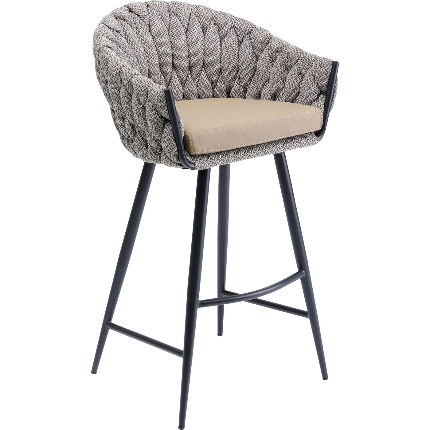 - Comodo sgabello da bar in colori naturali e look tweed con schienale a tutta lunghezza in un raffinato look intrecciato