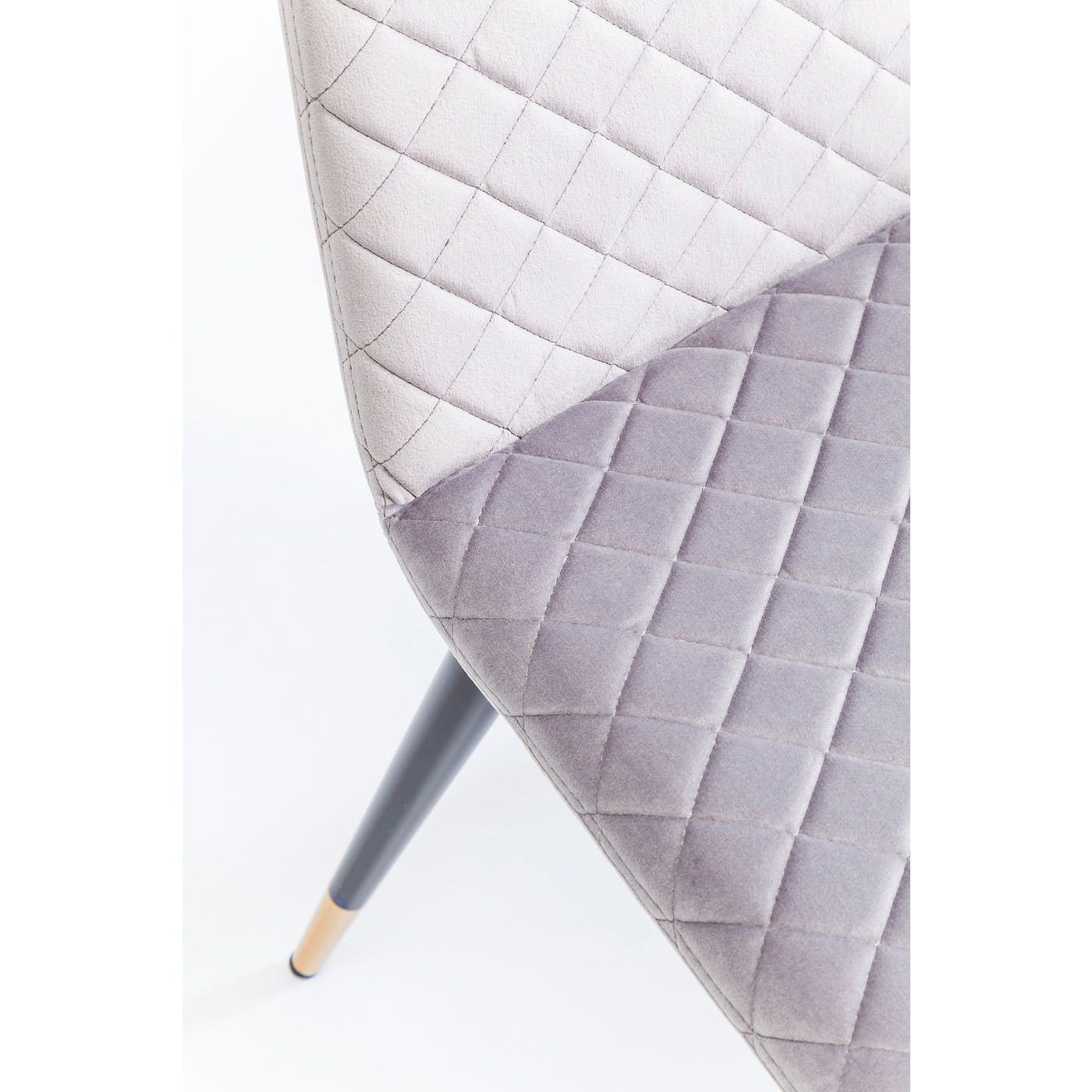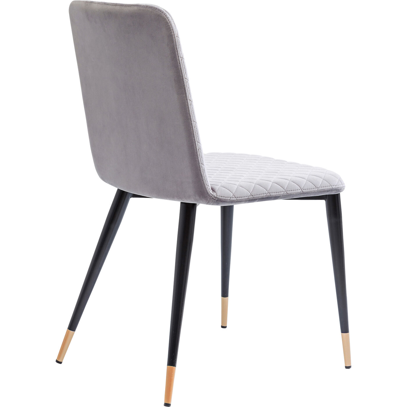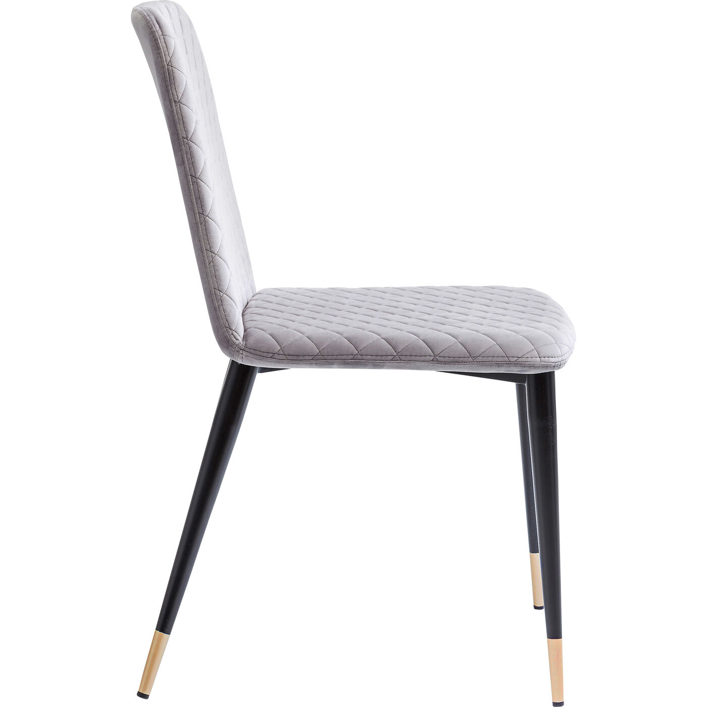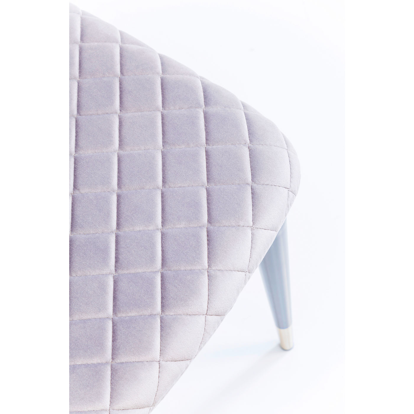 - Bequemer, samtiger Stuhl in Grau mit leichter Polsterung, edler Diamantsteppung und Stahlbeinen mit goldenen Metallkartuschen