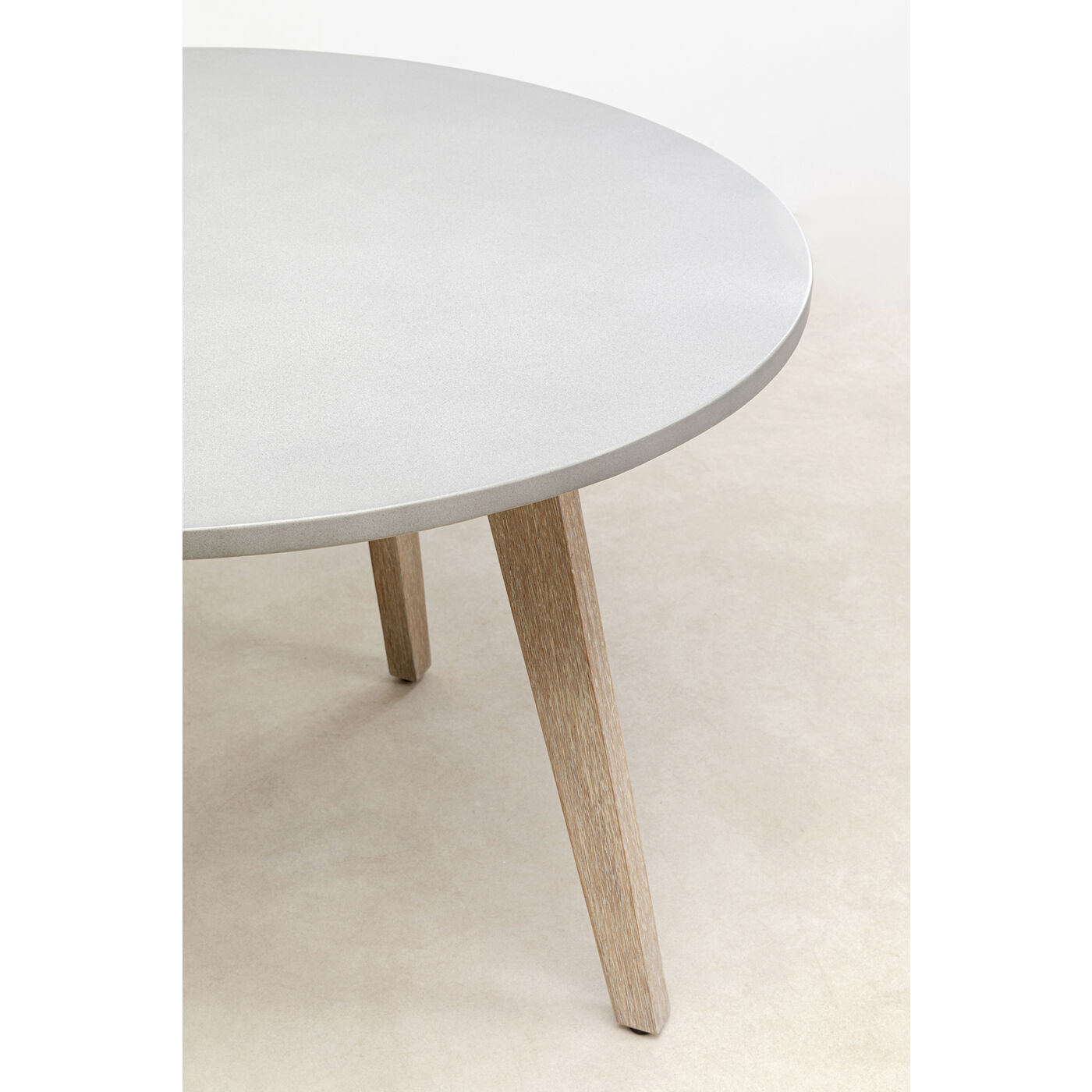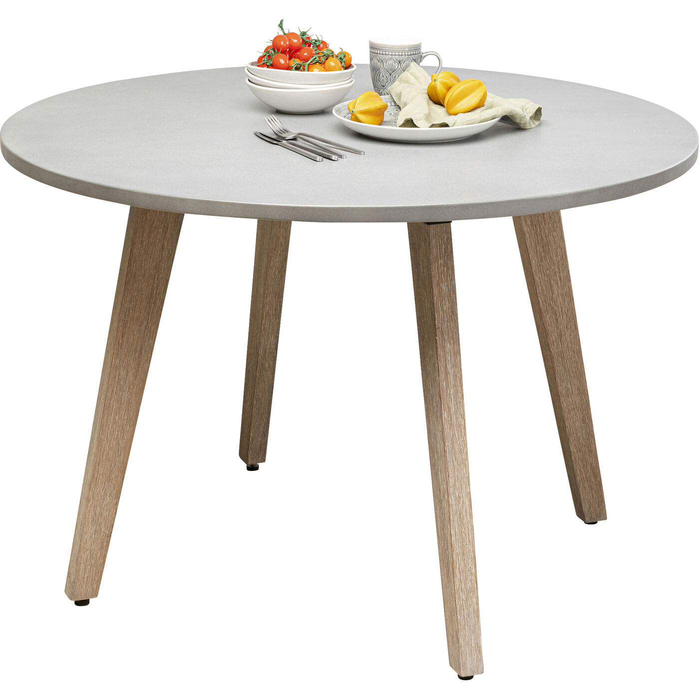 - Il piano del tavolo da pranzo Ø110cm è in cemento