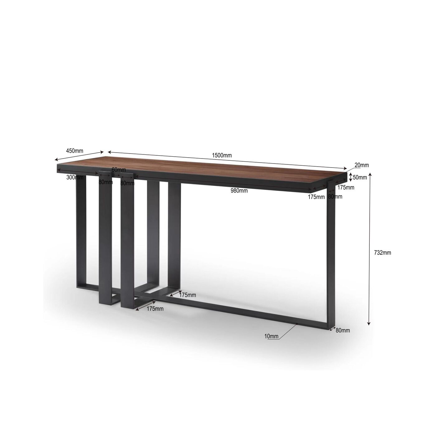 - Consolle in metallo con legno di noce, 73 x 150 x 45 centimetri (a/l/p)