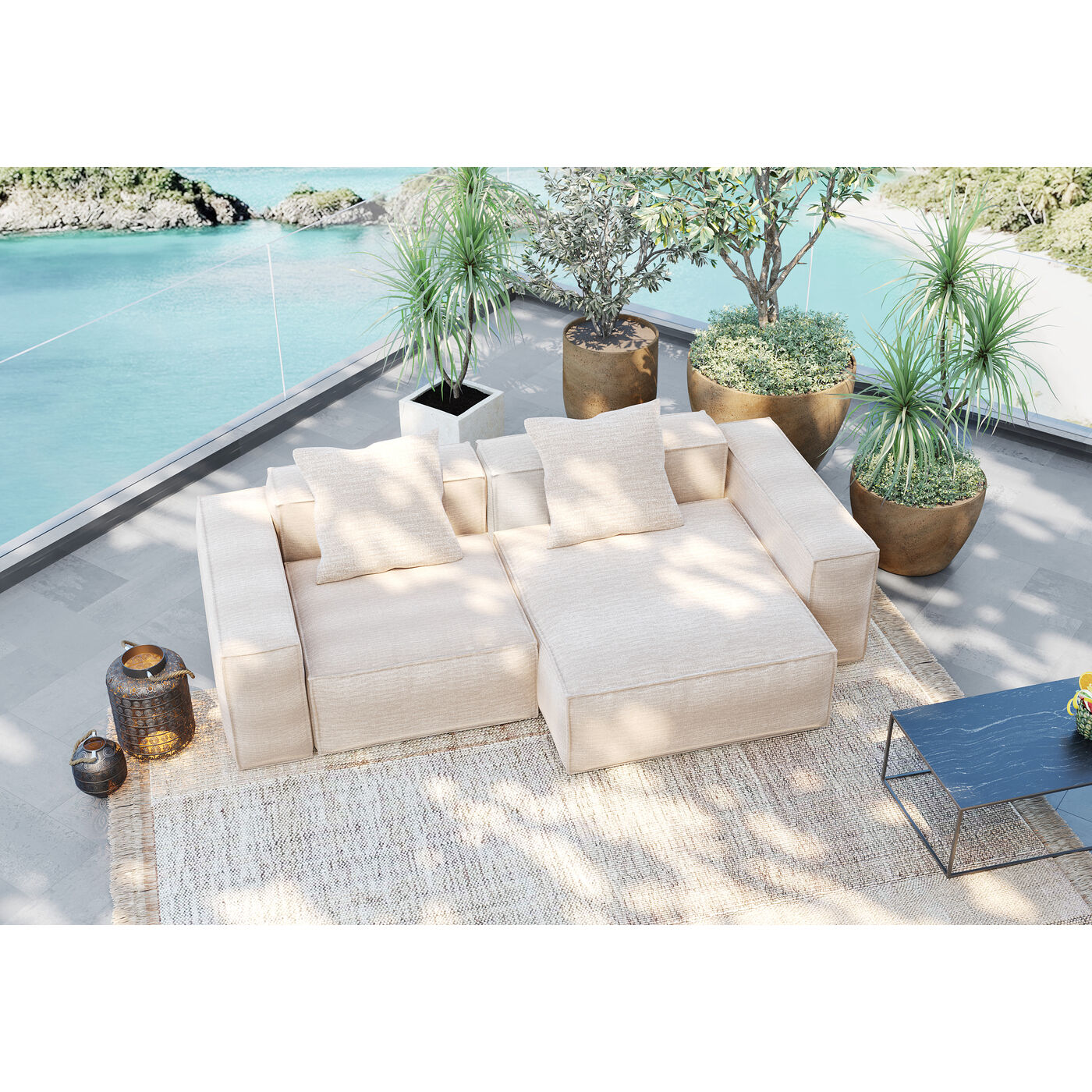 Divano Kalua destro 2-Sitzer Outdoor Linen